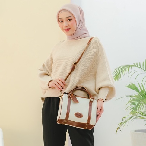 Tas Wanita Jinjing Dan Slempang Bahan Kulit Sapi Asli Model Spedy 2 Tone / Free Gravir Nama Di Gantungan Tas