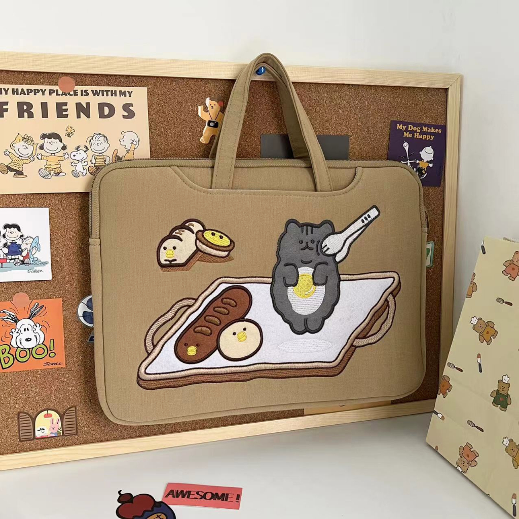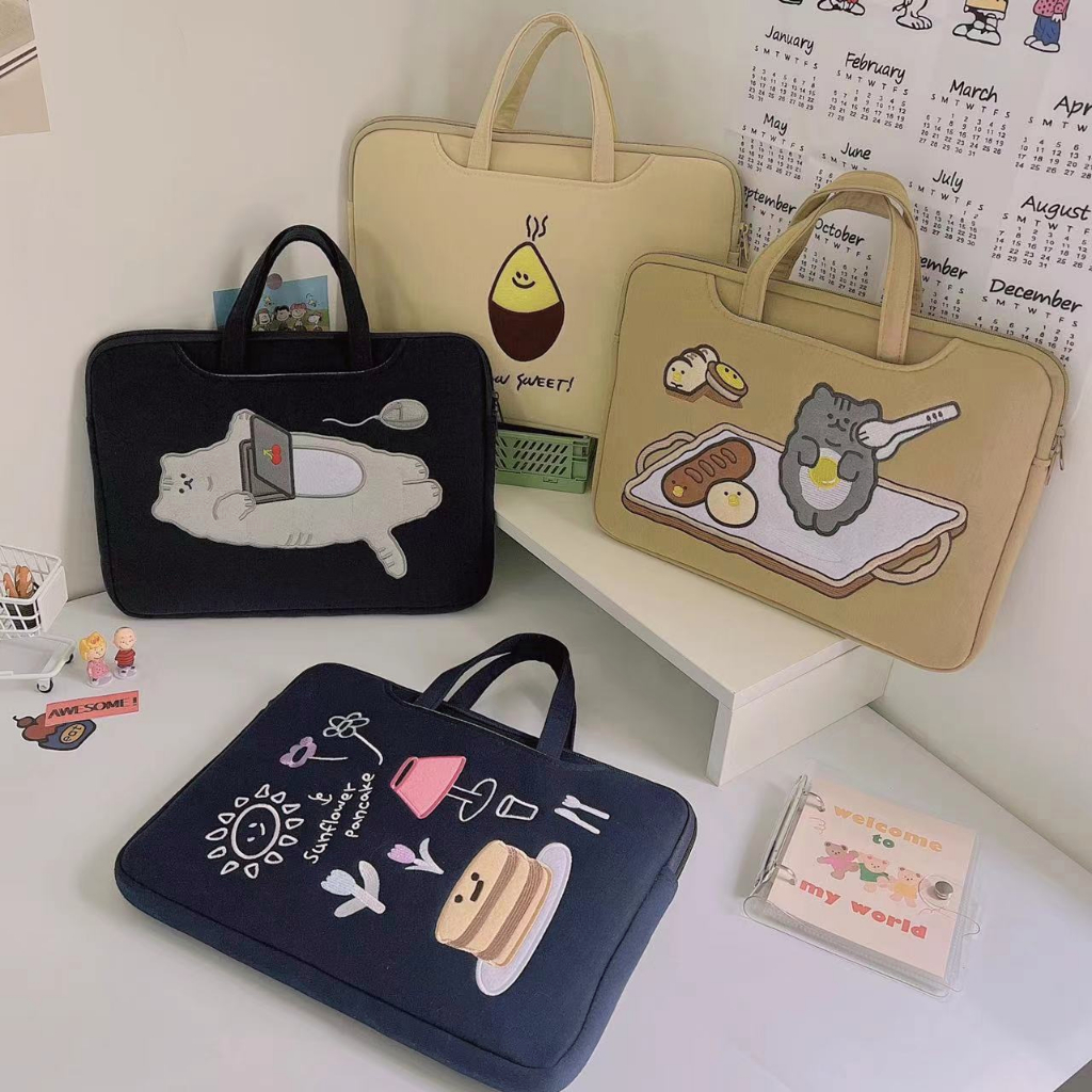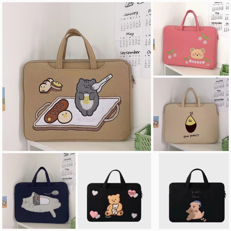 Tas Laptop Sleeve Case Tahan Guncangan Bordir Tangan Gaya Korea 13 14 15 16Inch