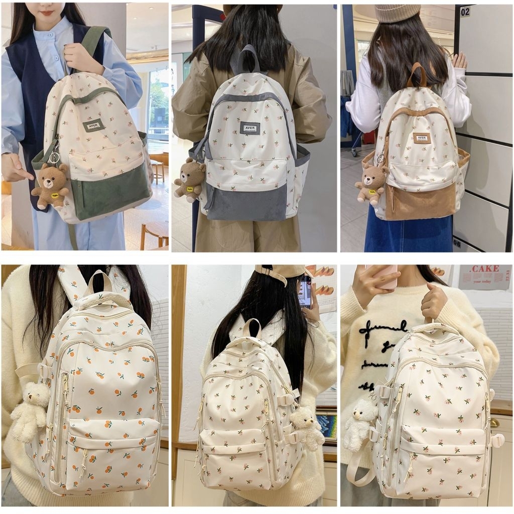 Tas Ransel Laptop Backpack Korea Import Wanita 29 50 + Gantungan Kunci / Boneka