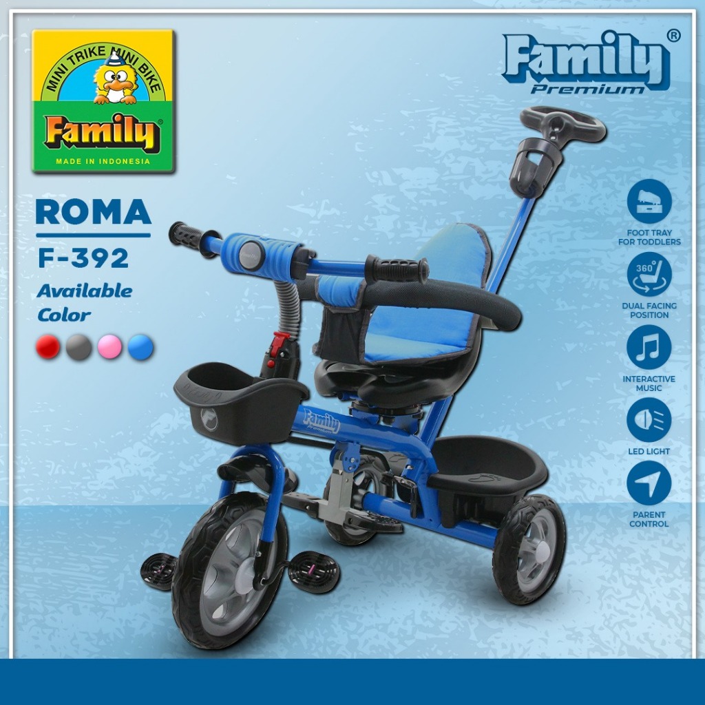 Family Sepeda Anak Roda 3 Roma / Stroller Anak Premium Musik interaktif F-392
