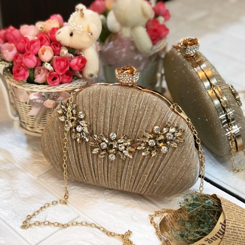 Tas Pesta Presley Embellished Crystal Box Clutch