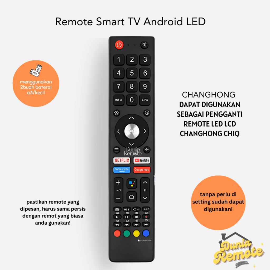 Remot Remote TV CHANGHONG Android Smart TV Led lcd L32H4 Tanpa setting