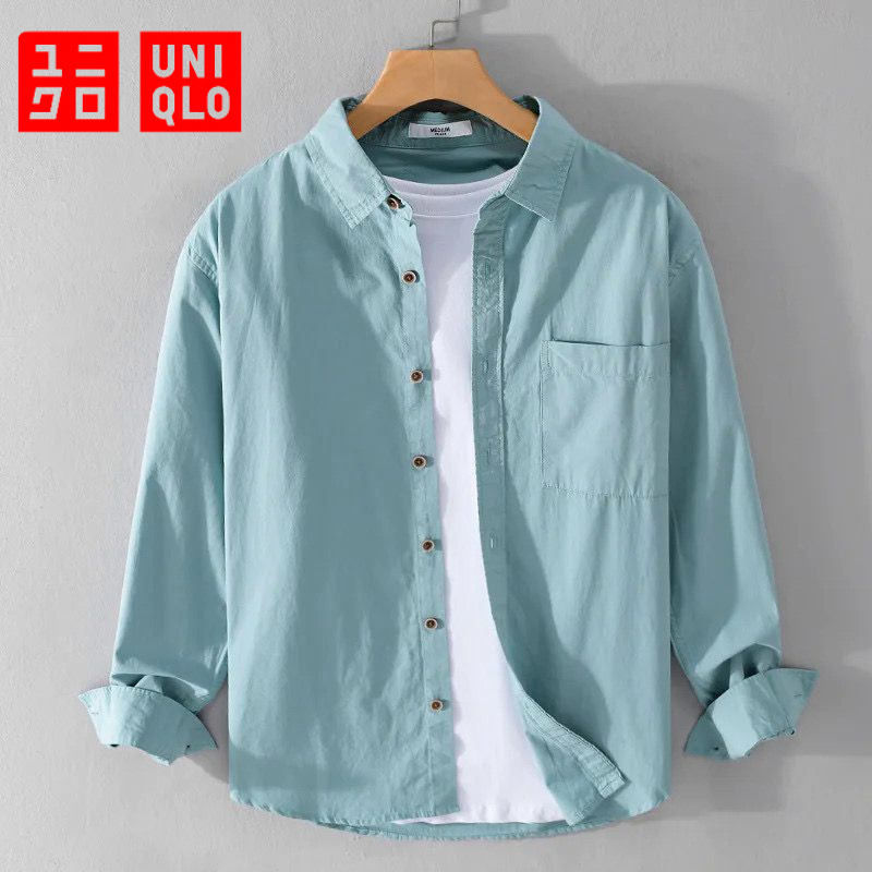 [Mall] Kemeja Polos Pria UNIQLO Lengan Panjang Kemeja Pria Casual Premium Slim-Fit