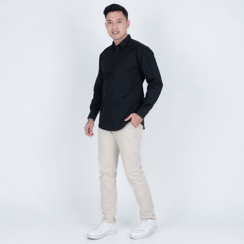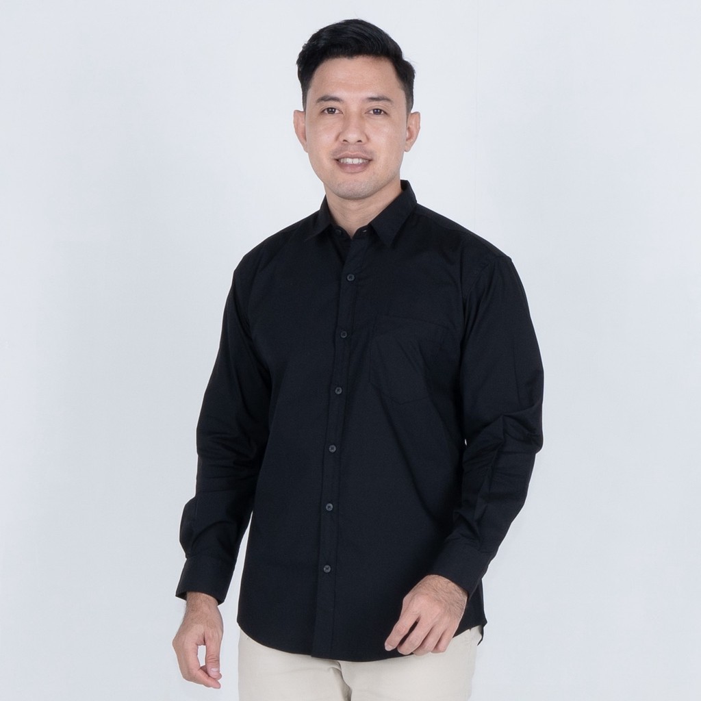 [Mall] BENHILL Kemeja Basic Formal Pria Panjang Katun Poplin Black 27357-58-16233