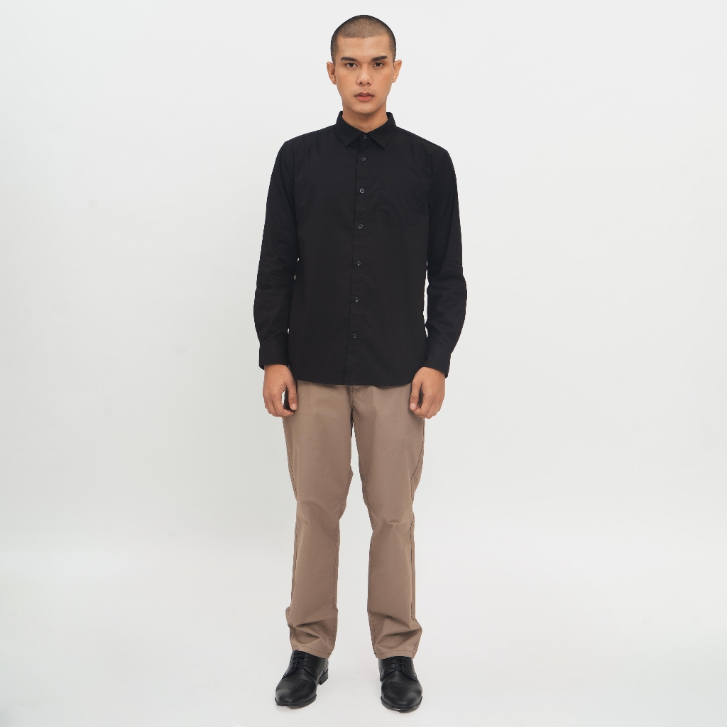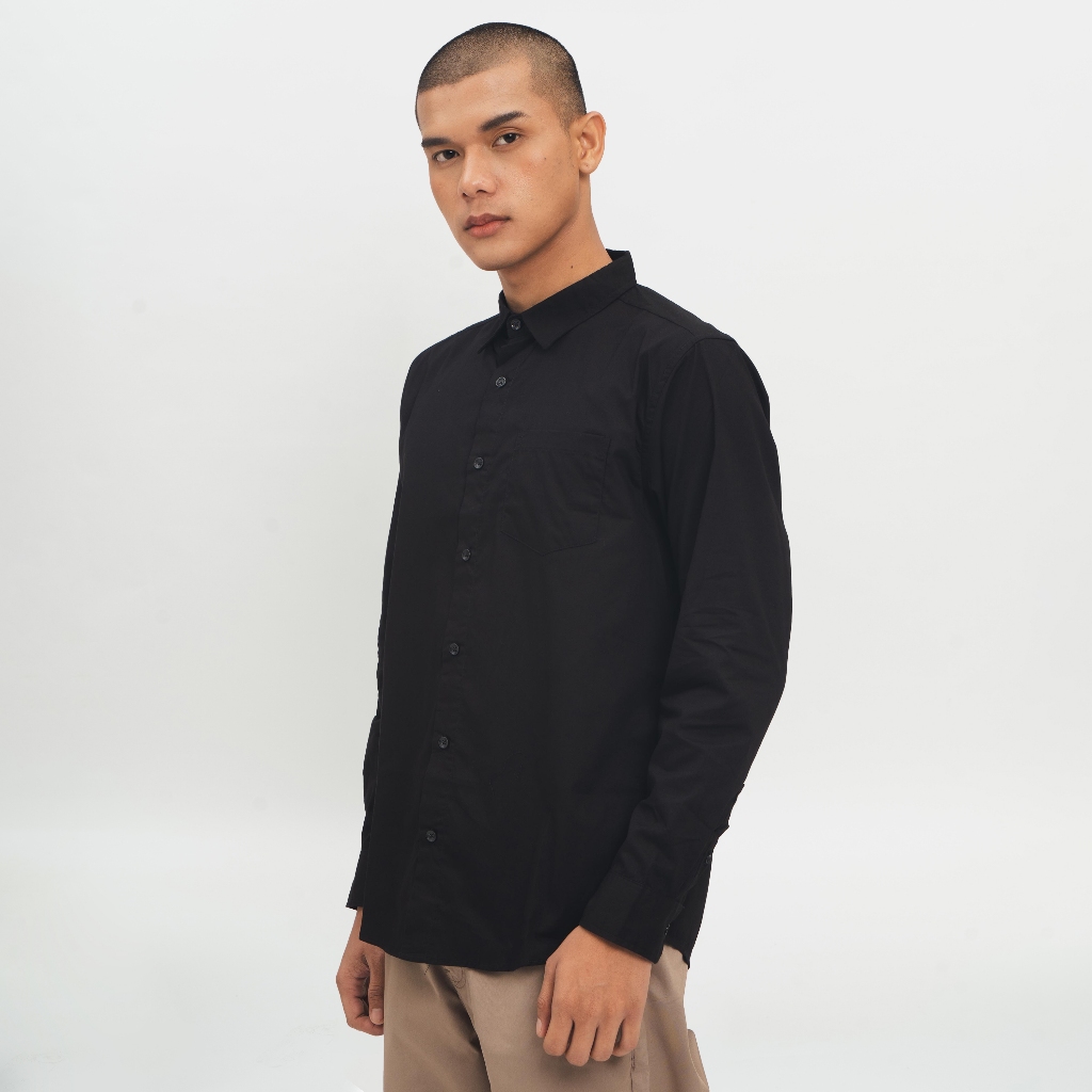 [Mall] M231 Kemeja Pria Basic Polos Panjang Hitam 1468D