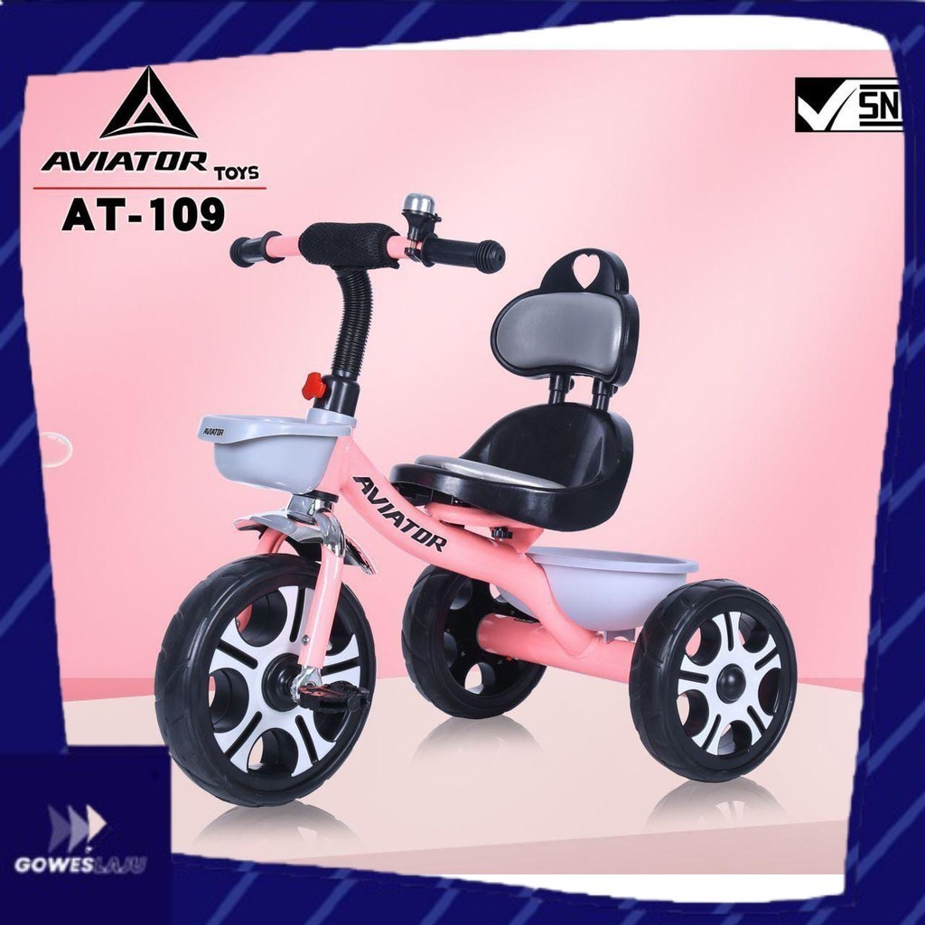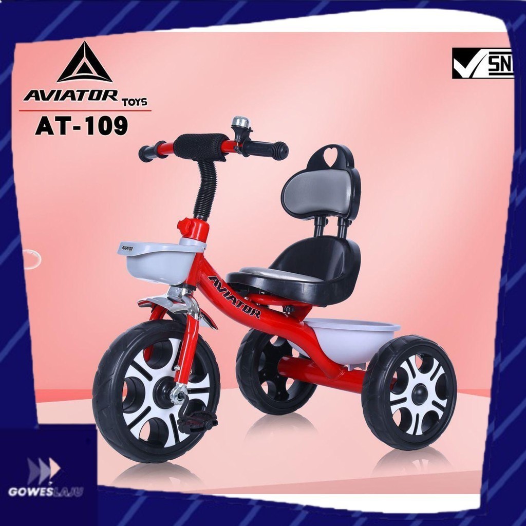 Sepeda Tricycle Anak Roda Tiga AVIATOR AT-109 Lonceng & Keranjang Depan Belakang - GowesLaju