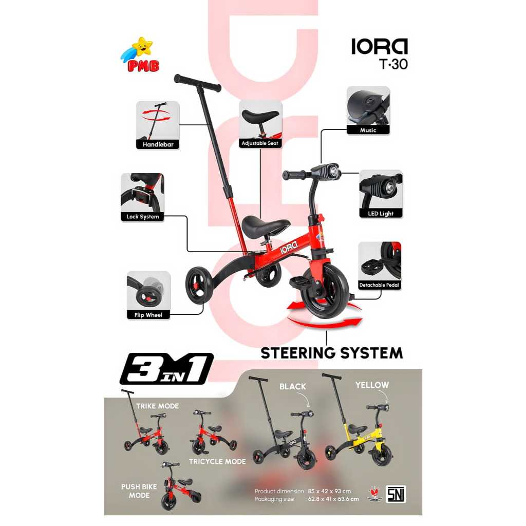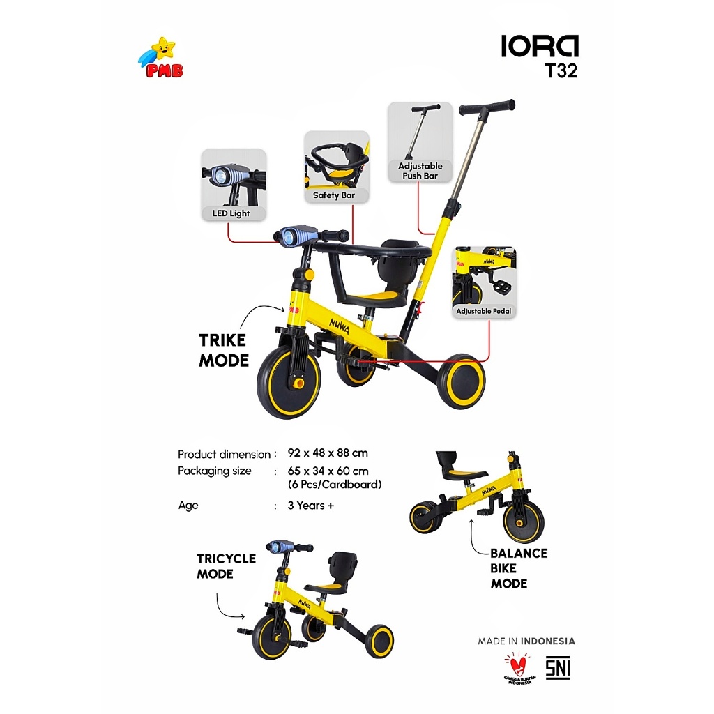 Sepeda Anak Roda 3 Tricycle PMB IORA - NUWA Balance Bike Push Bike Sepeda Anak Roda Tiga/Sepeda Anak