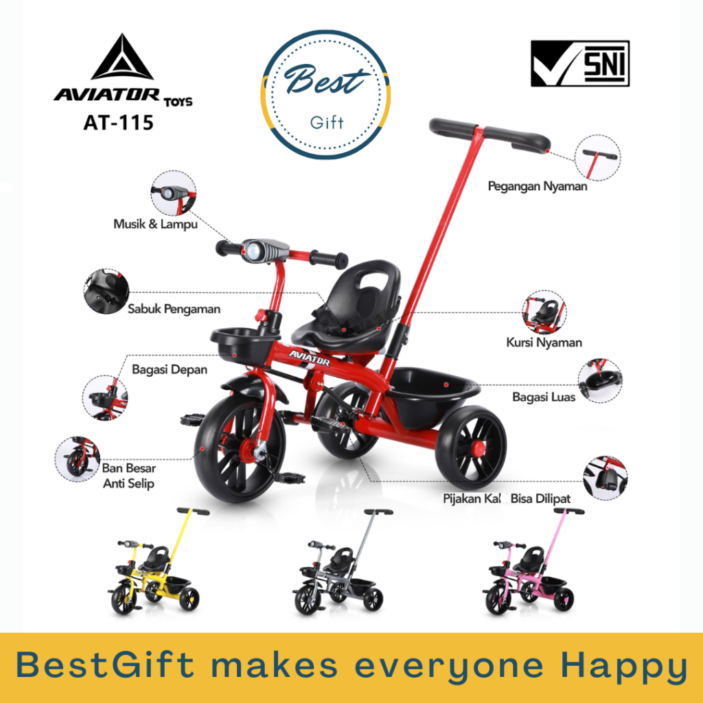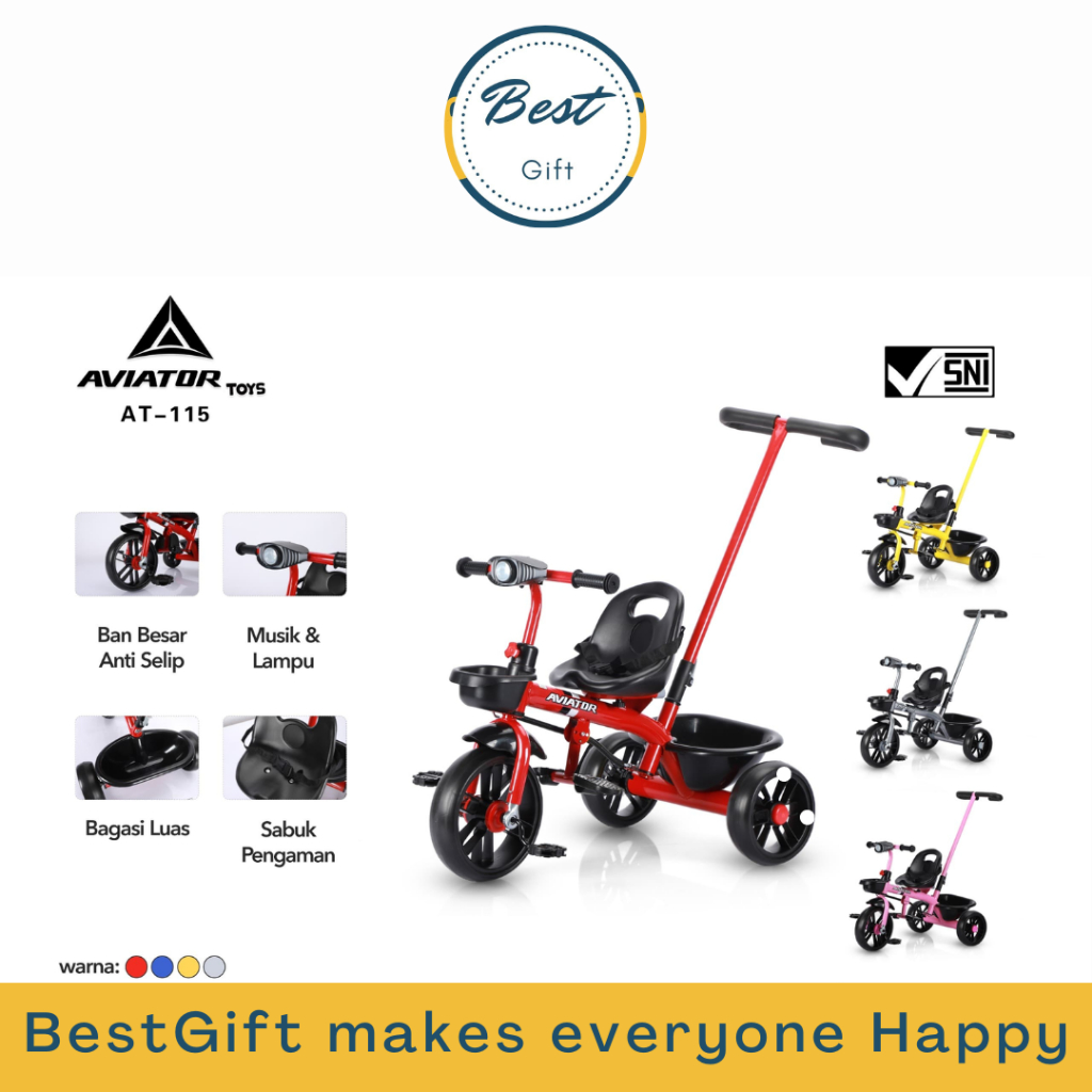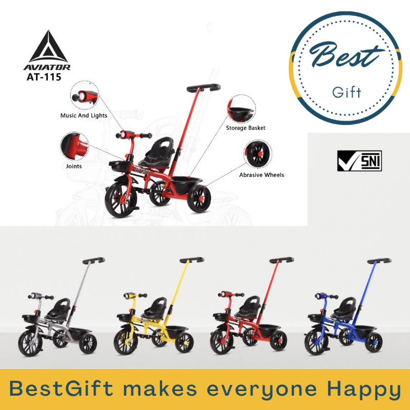 TRICYCLE WARNA AT-115 LAMPU+MUSIK+STIR AVIATOR