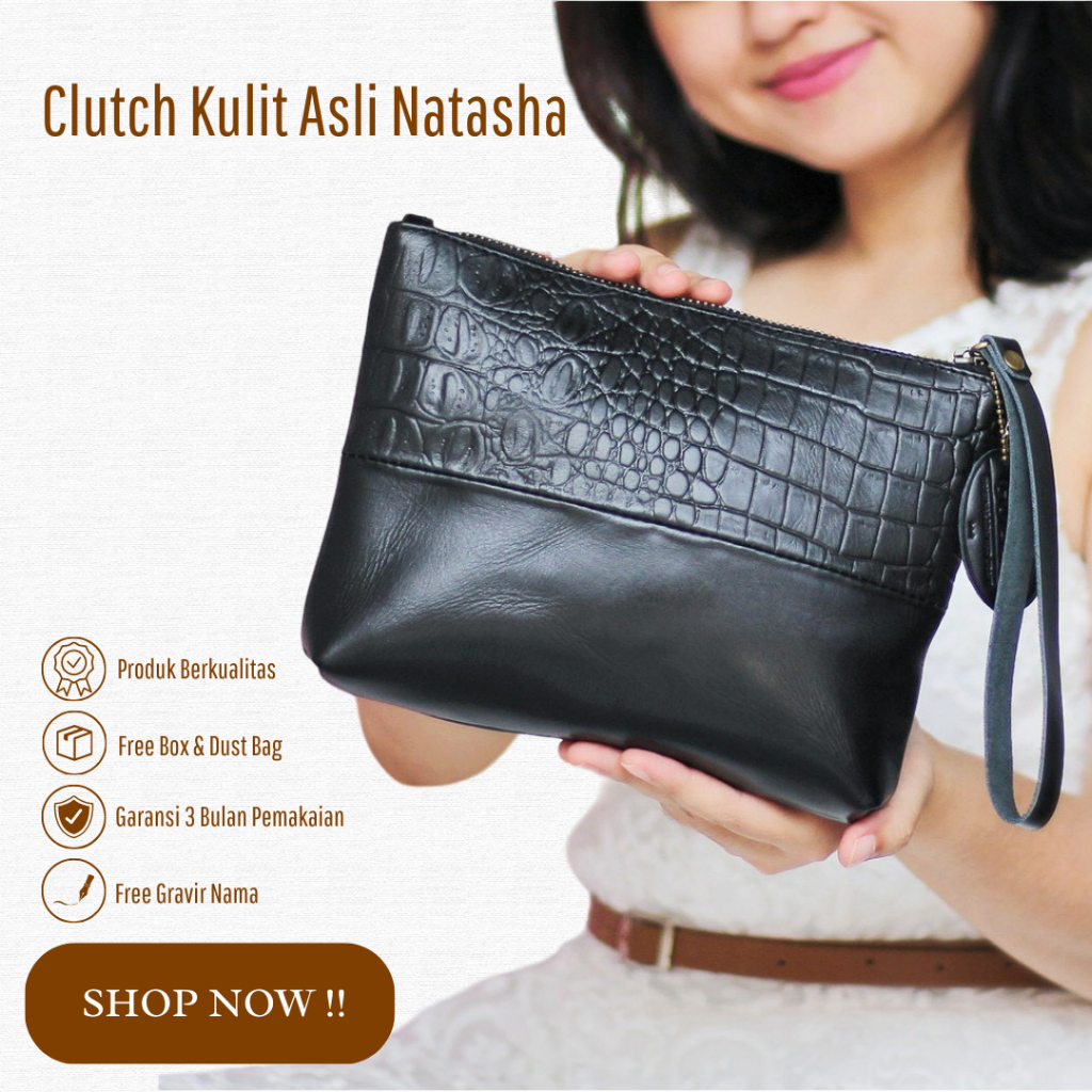 Gozzo Leather Clutch Wanita Kulit Sapi Asli Natasha Croco - Gratis Custom Nama