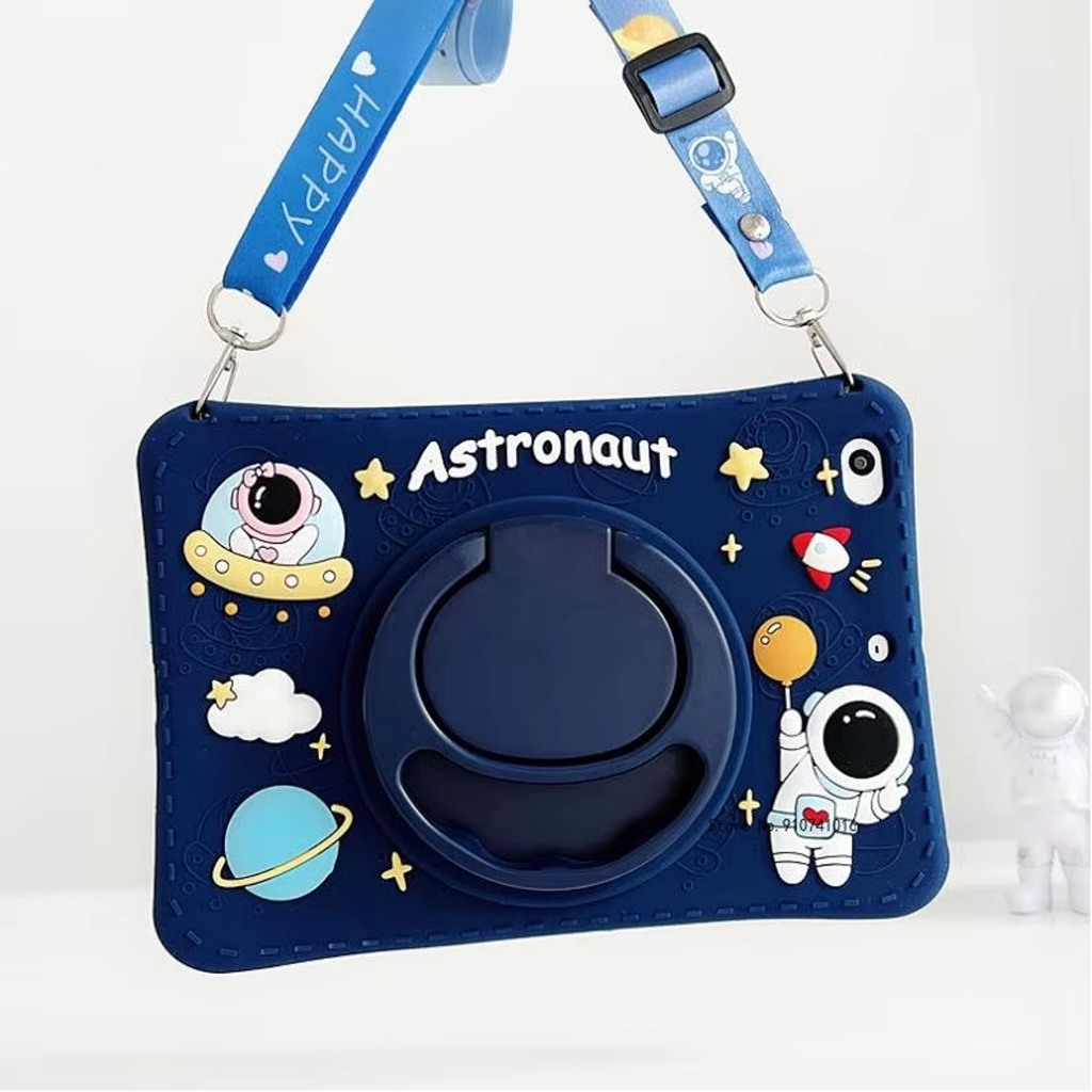 Case Samsung Tab A9 8.7 inch | A9+ 11 Inch Case Motif Silicon Astron Free Tali / Silikon Case Anak Tali Lanyard Astronot Lucu
