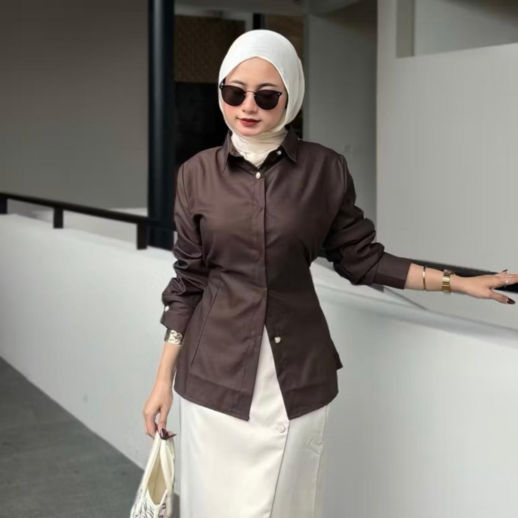 Seka Shirt - Kemeja Fitted Wanita Katun | Atasan Wanita Lengan Panjang Fit Body