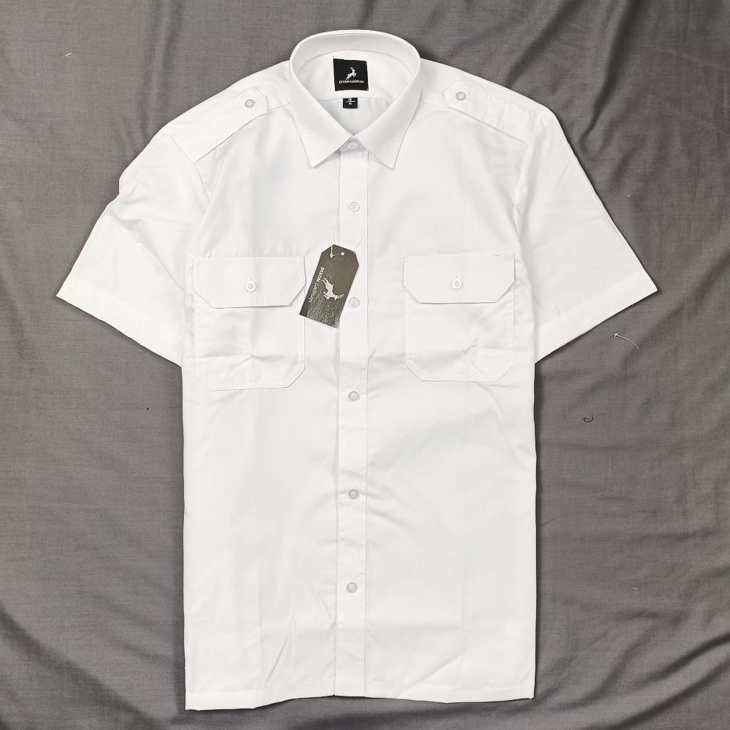 [Mall] Kemeja Pria Putih Pendek Dinas PNS Pilot Kantong Dua Slimfit Dixon Gabrian