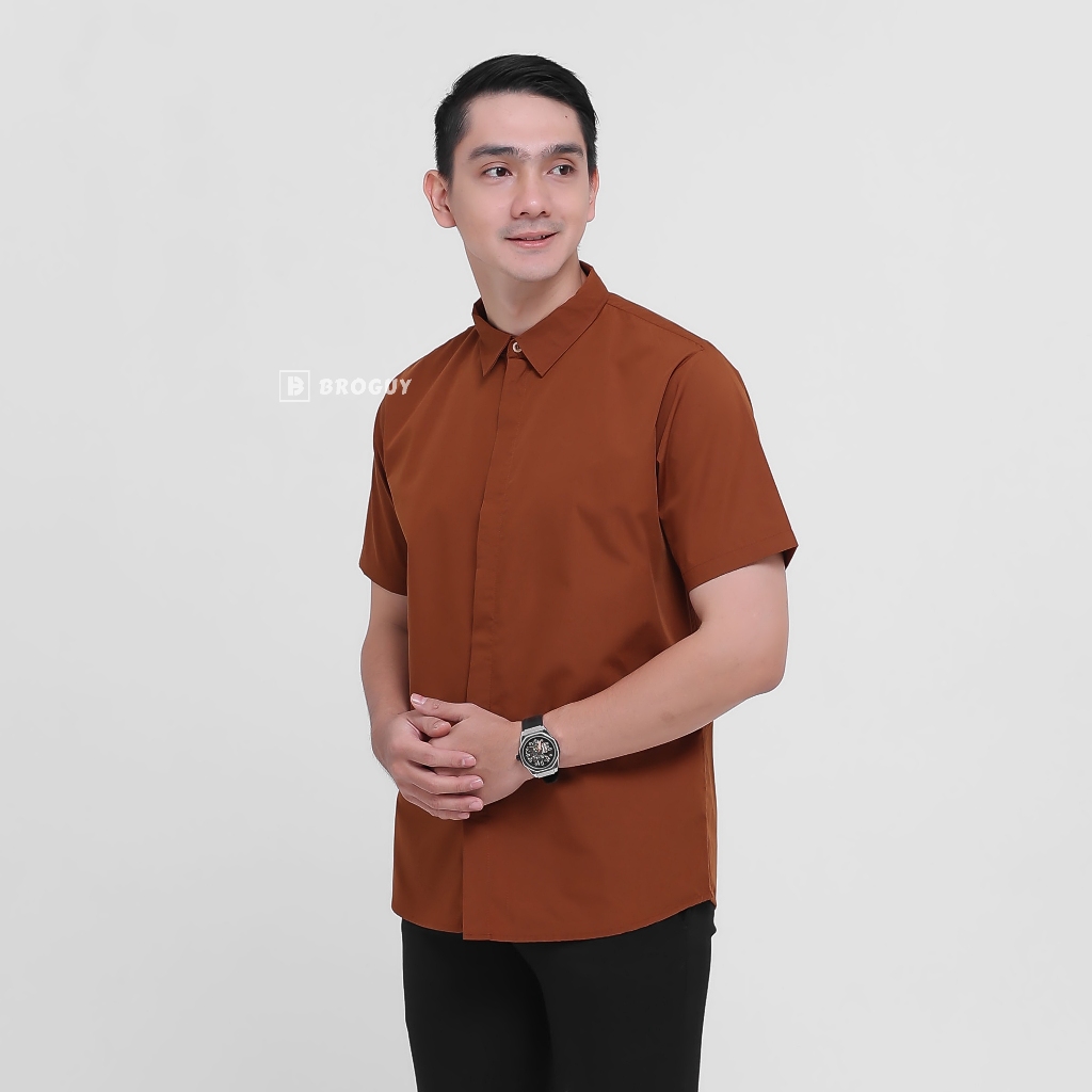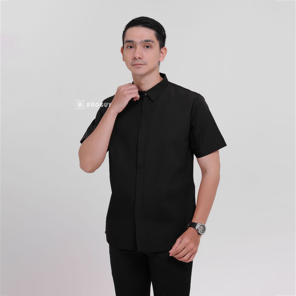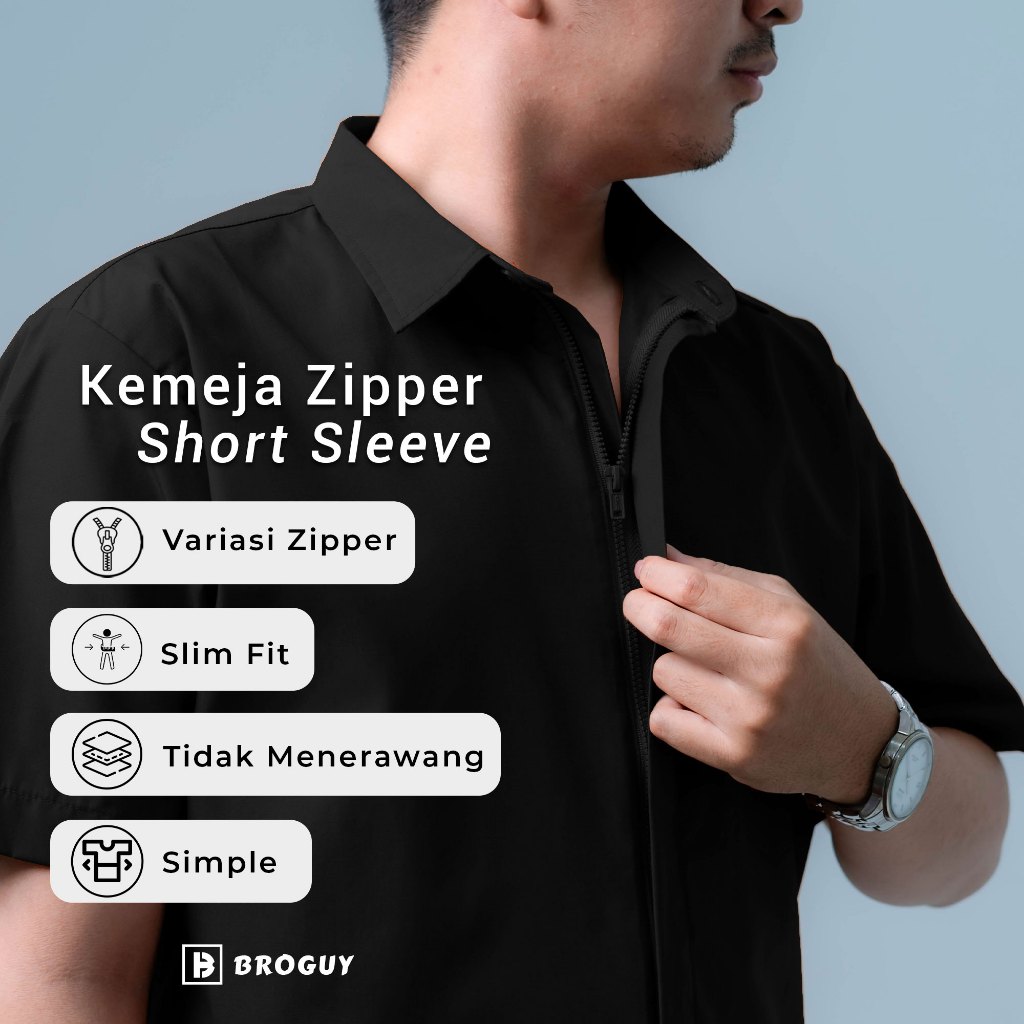 [Mall] BROGUY Kemeja Zipper Pria Simple Lengan Pendek