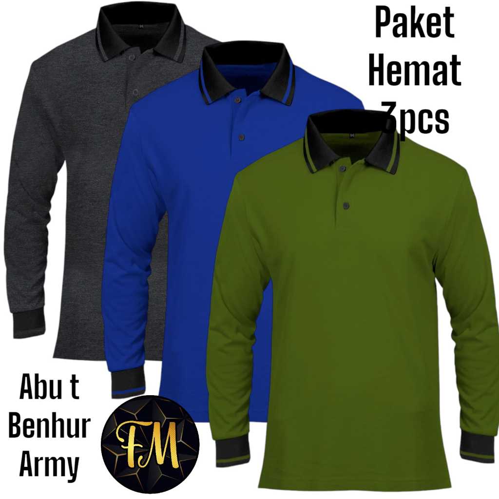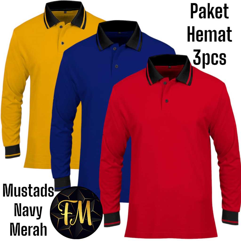 [Mall] FINDMINE - PAKET 3pcs KAOS POLO SHIRT POLOS lengan panjang COWOK/ WANITA