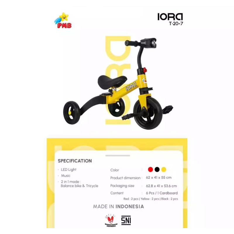 Sepeda Anak Roda Tiga IORA dari PMB T20-8 T-20 Sepeda Keseimbangan 3in1 Balance Bike T30 T32 T31