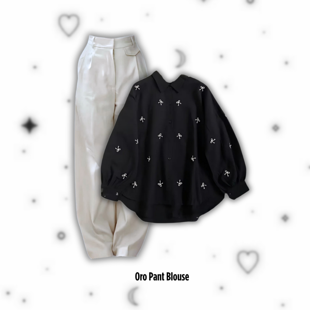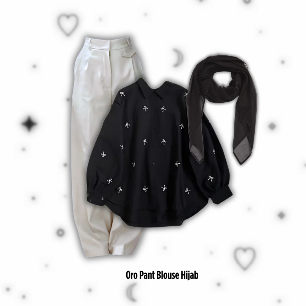 One Set Wanita Korean Style Kekinian (Blouse Pita Hijab Bella Square Belt Oro Pant) | DSD190