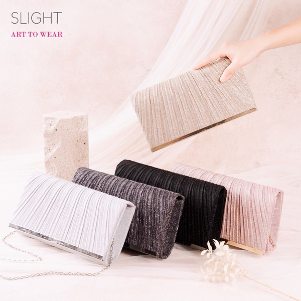 Slight Clutch Tas Pesta Reveka Hitam Light Silver Dark Silver Dan Pink Rose