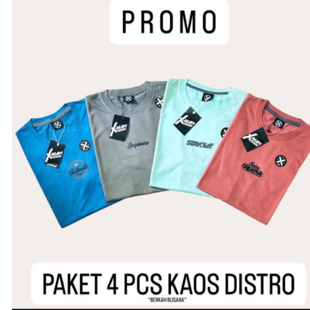 [Mall] 4 PCS Kaos Branded Distro Pria Wanita Semi Katun 24s Size M-L-XL-XXL-XXXL...