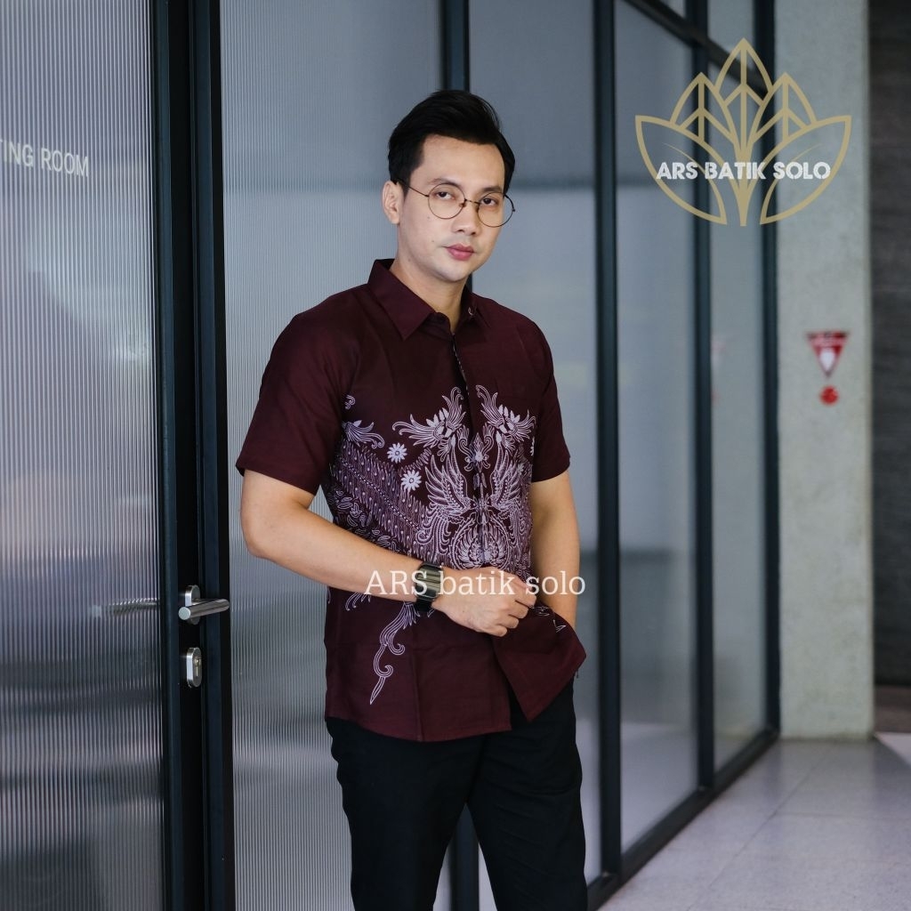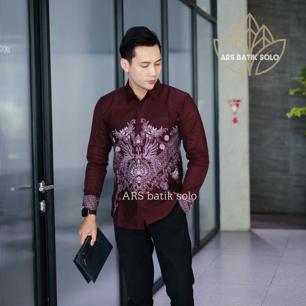 [Mall] Batik ARS motif RENJANA BURGUNDY Kemeja batik pria SLIMFIT lengan panjang pendek bahan katun premium