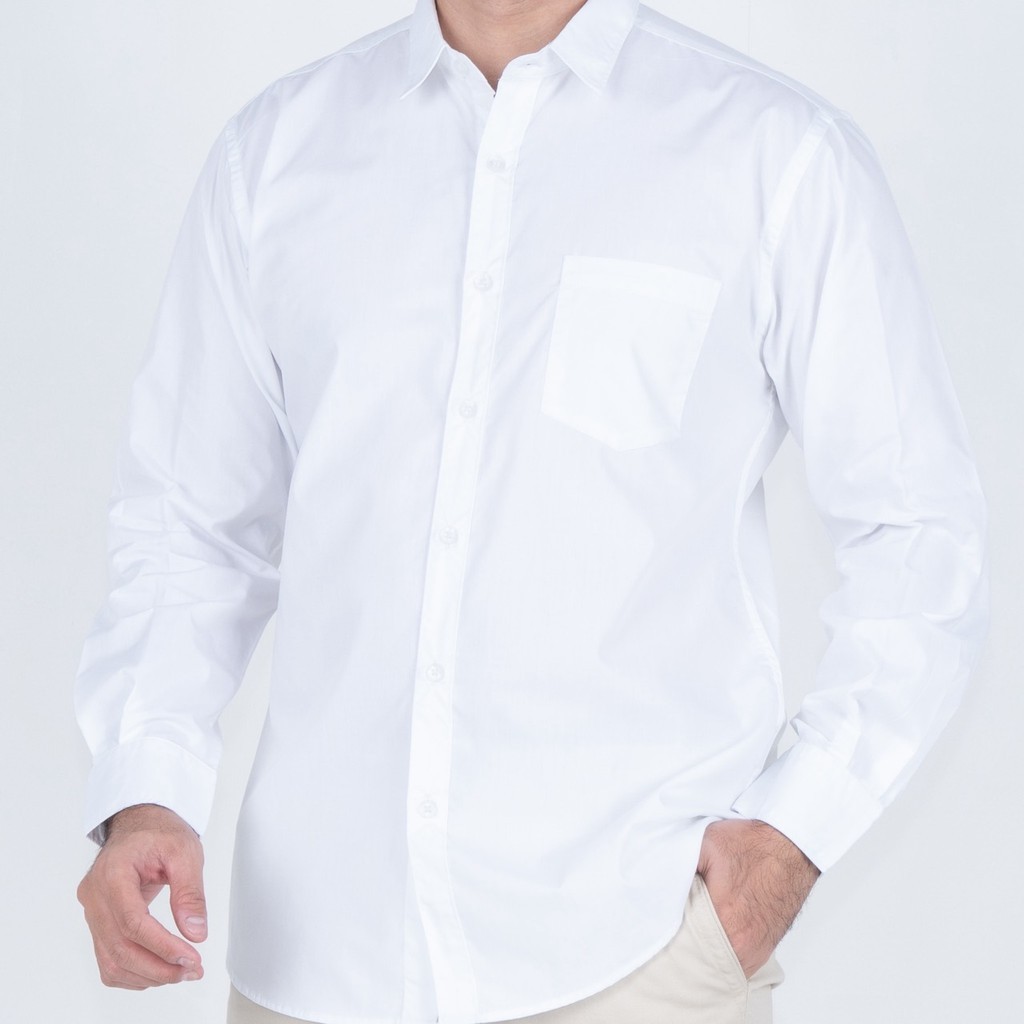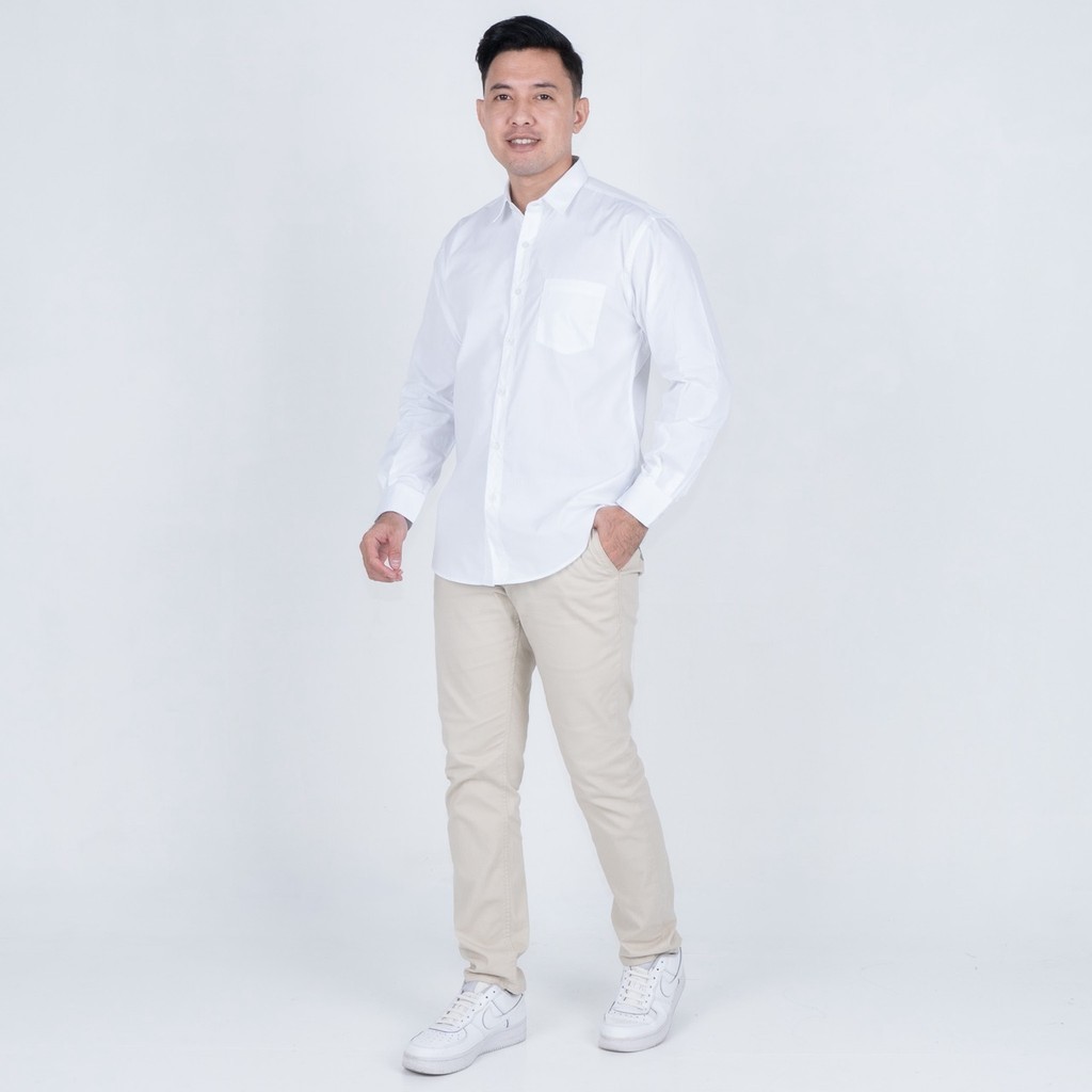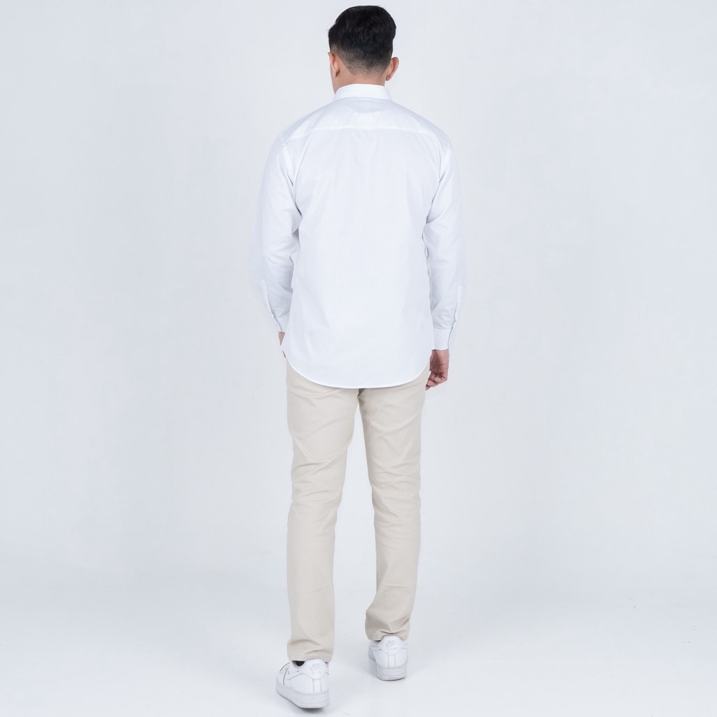 [Mall] BENHILL Kemeja Basic Formal Pria Panjang Katun Poplin White 09-14-12133