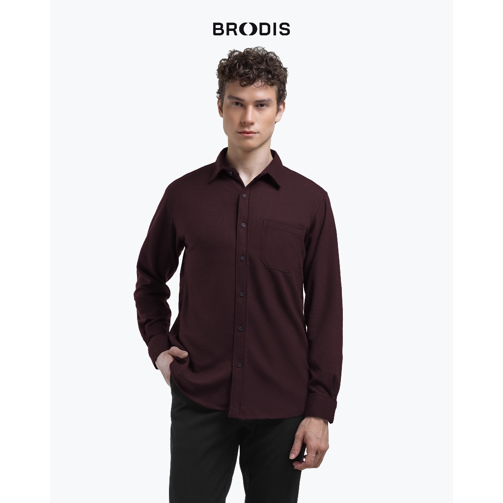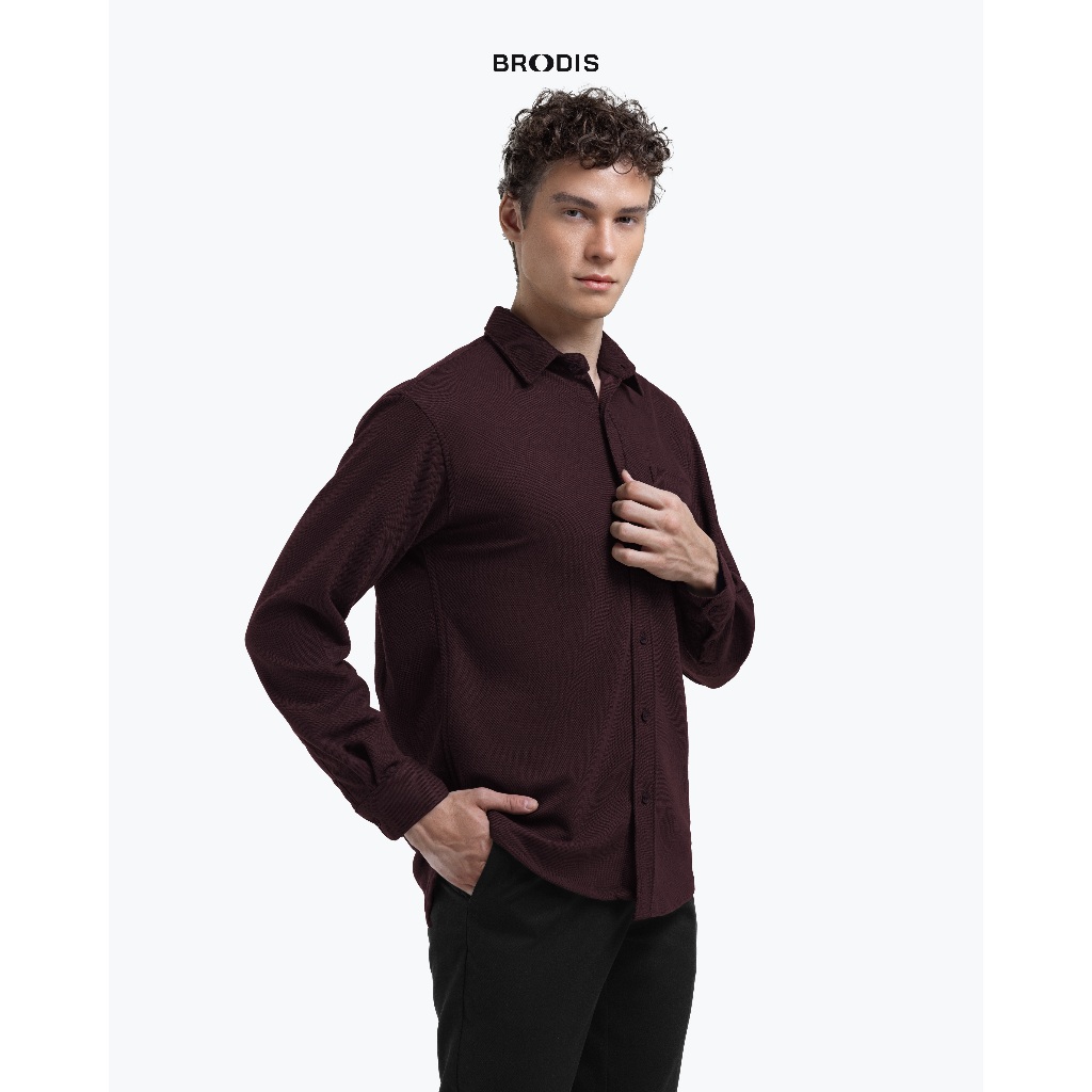 [Mall] Broodis Kemeja Polos Merah Hati Cotton SOFTEE Deep Burgundy Lengan Panjang Slimfit