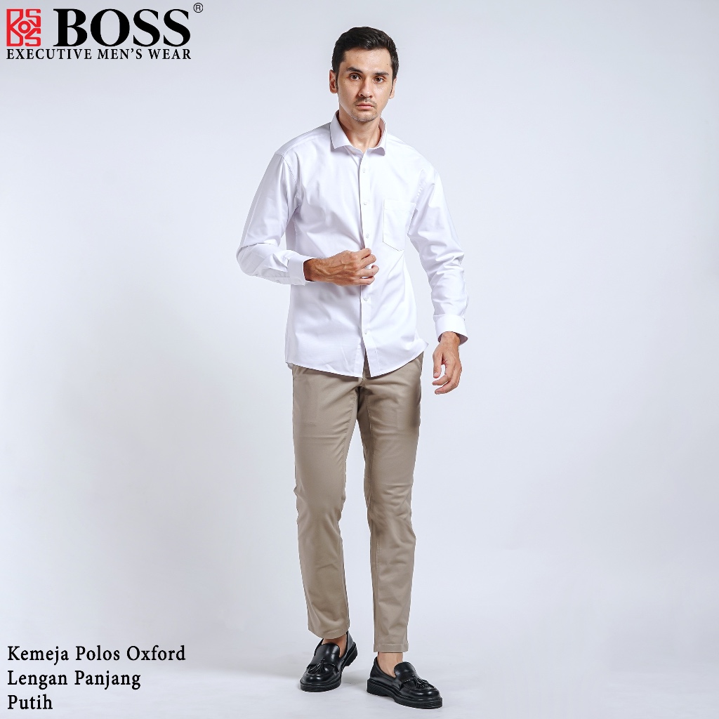[Mall] BOSS Kemeja Polos Pria Oxford Lengan Panjang Slim Fit OXK Putih
