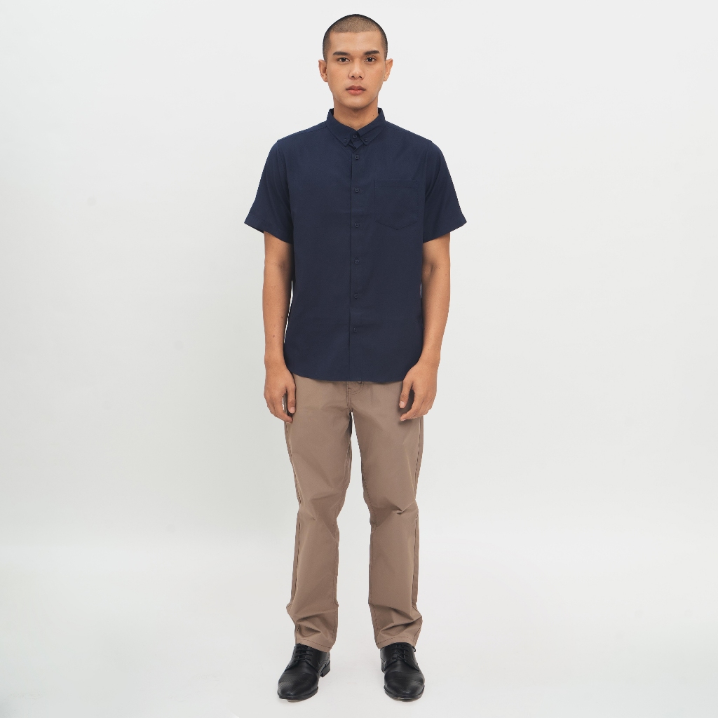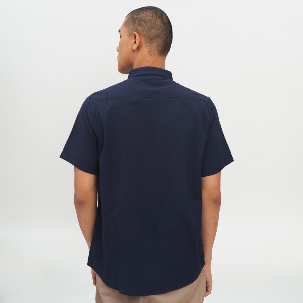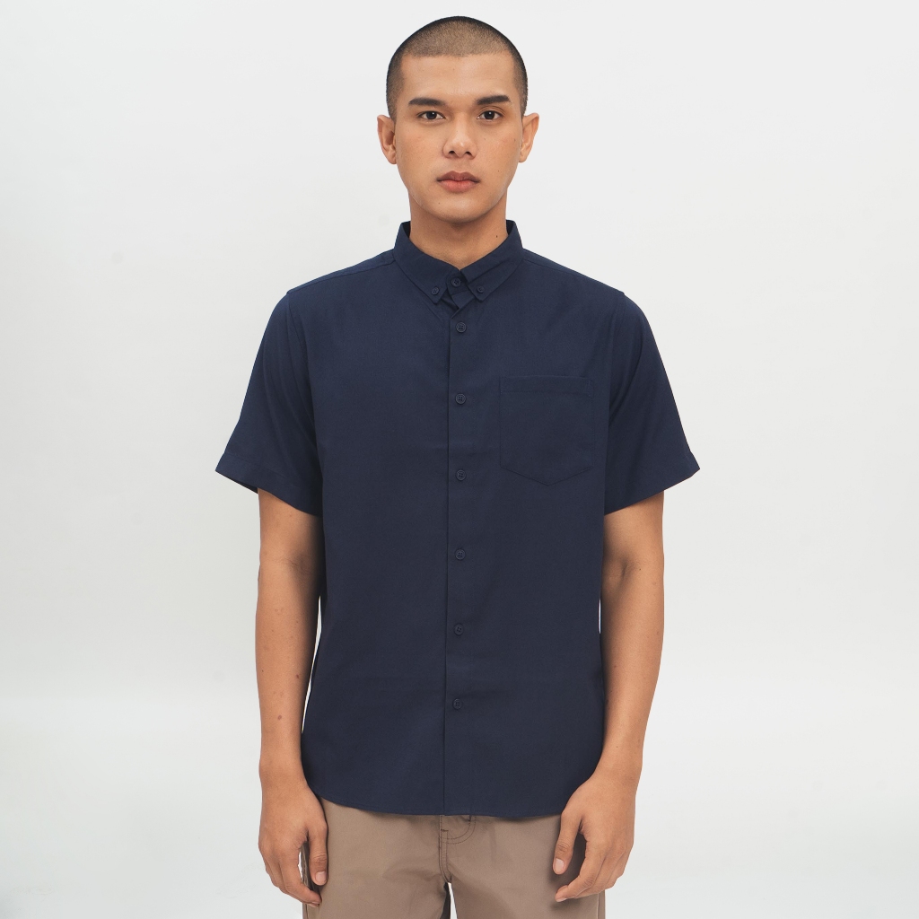 [Mall] M231 Kemeja Pria Basic Polos Oxford Pendek Navy 1457G