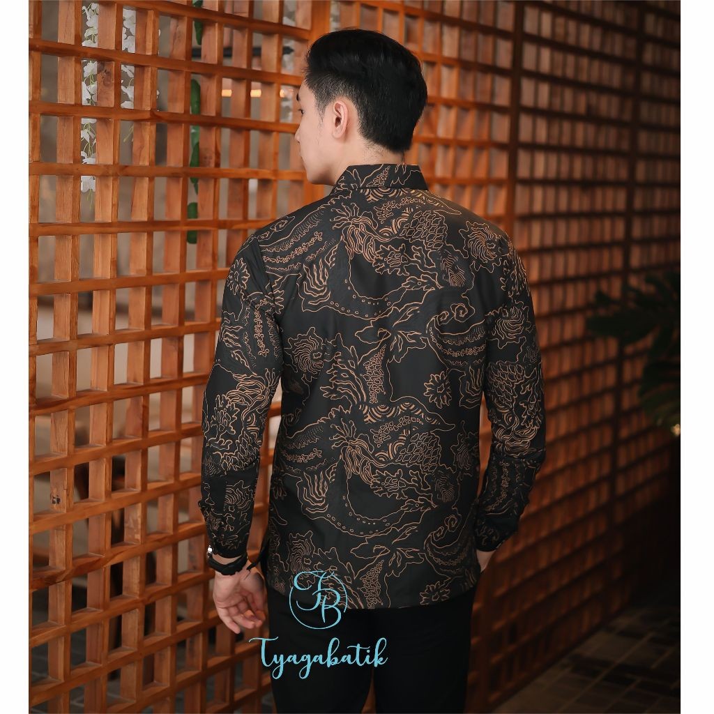 [Mall] Kemeja Batik Pria Baju Lengan Panjang Slimfit Lapis Furing Batik Tyaga 1038 Bahan Katun Premium Elegan Motif Formal Warna hitam Original Kantor Kondangan Trend 2025 Asli Solo
