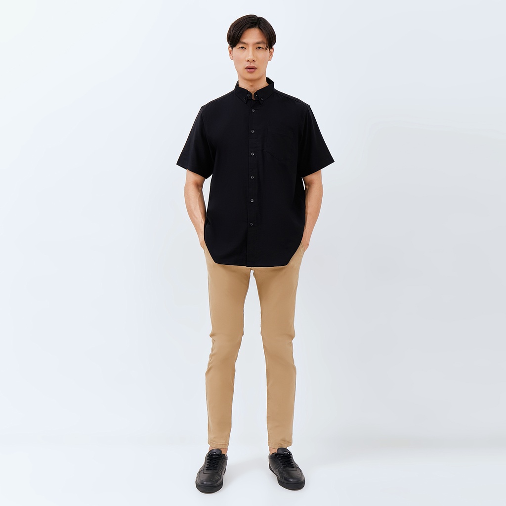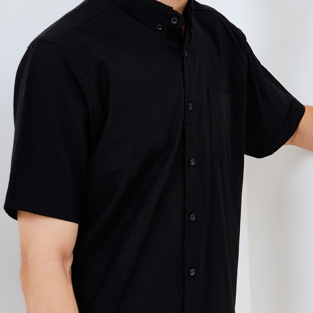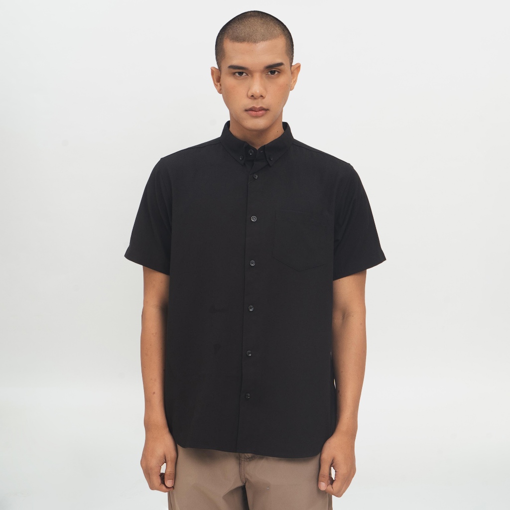 [Mall] Kemeja Pria Basic Polos Oxford Pendek Hitam 1457H