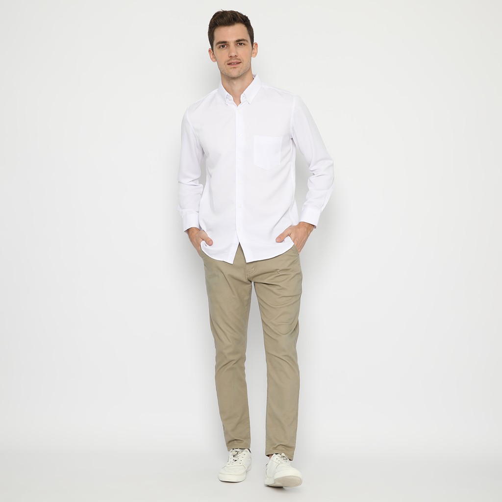 [Mall] Platini Kemeja Pria Polos Lengan Panjang Putih Polinosic 66014