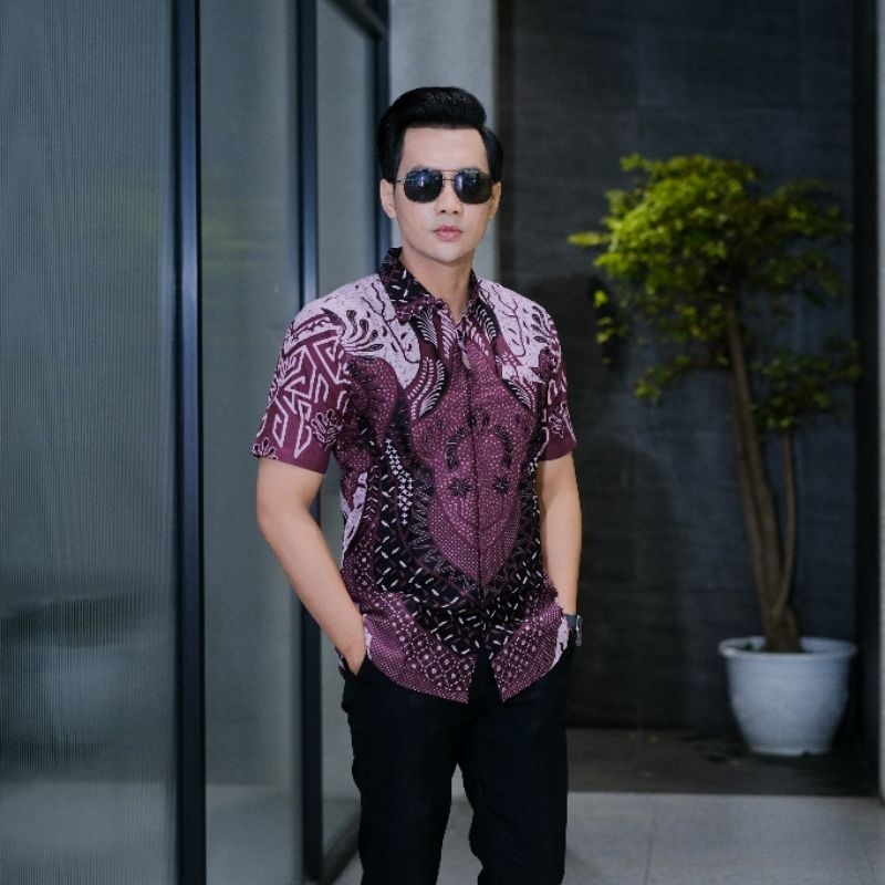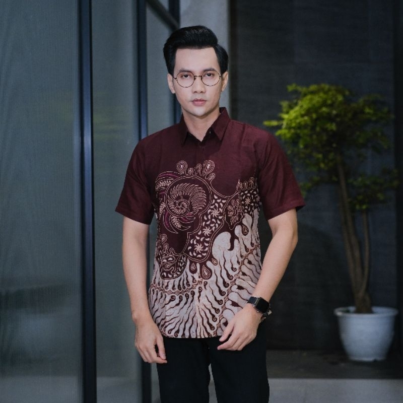 [Mall] Batik pria Arya kamandanu Merah Maroon original Slimfit,kemeja batik pria lengan panjang pendek bahan katun premium by AS batik solo