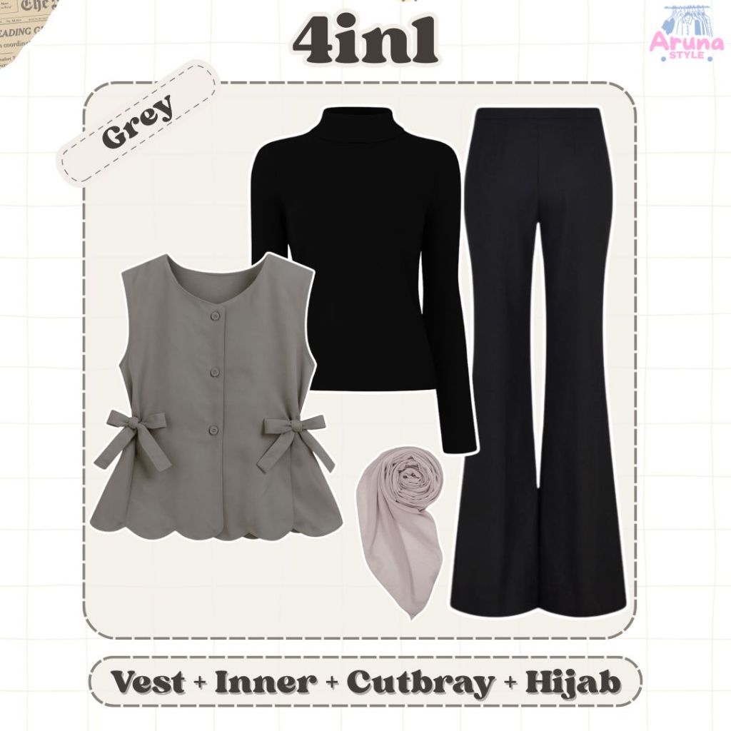 Set Vest Cherish 4in1 + Inner + Cutbray + Bella Square - Setelan Hangout Remaja Kekinian