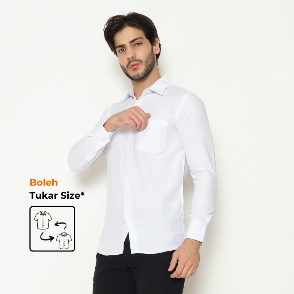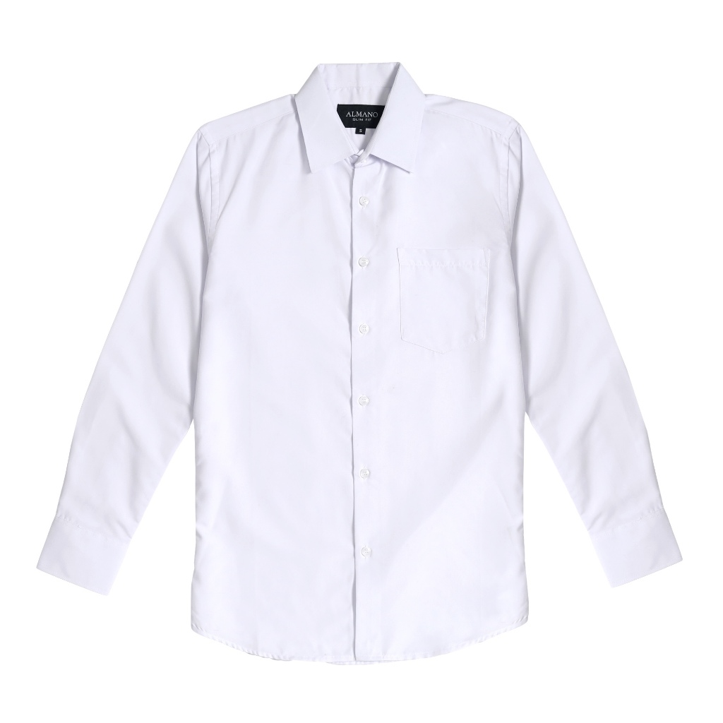 [Mall] ALMANO Eston Shirt LS White / Kemeja Pria Slim Fit Polos Panjang Putih