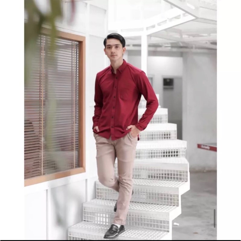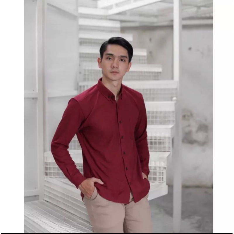 [Mall] ALJOSA Kemeja Pria Polos Maroon Lengan Panjang Kerja
