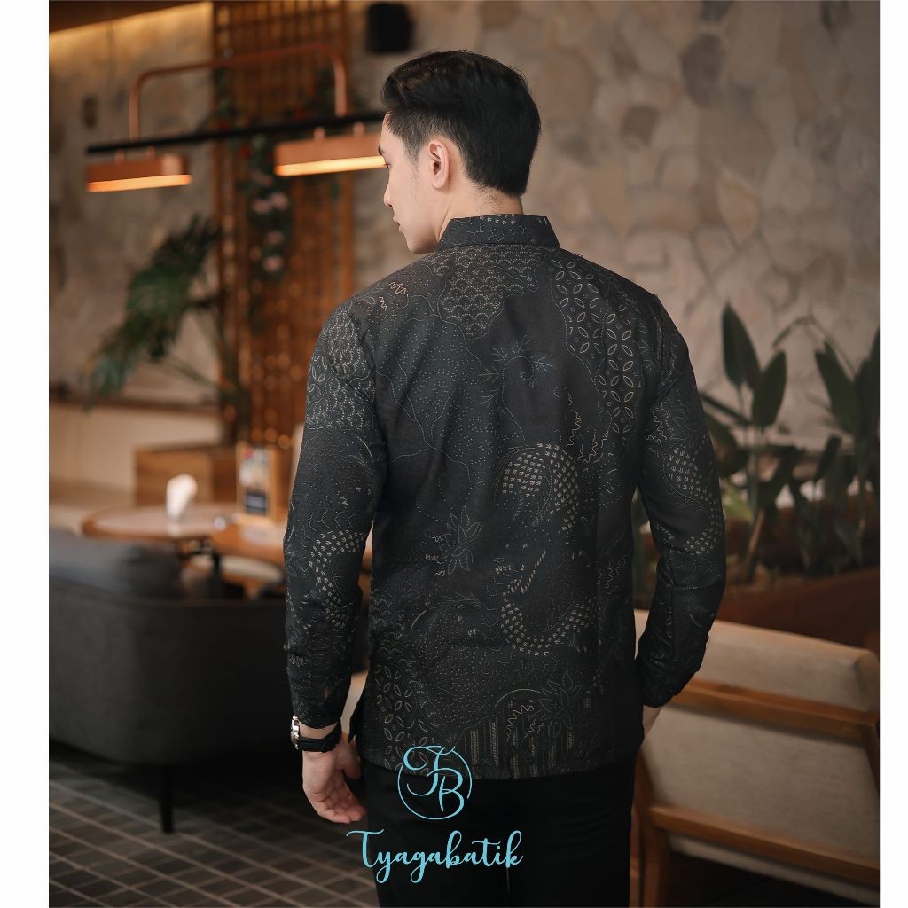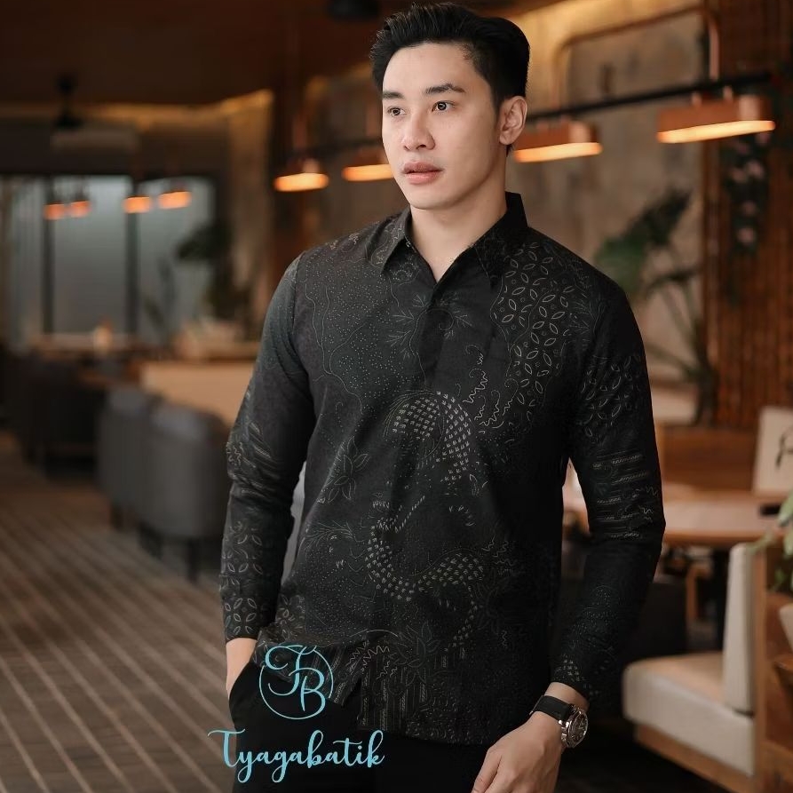 [Mall] Kemeja Batik Pria Baju Lengan Panjang Slimfit Lapis Furing Batik Tyaga 1074 Bahan Katun Premium Elegan Motif Formal Warna hitam Original Kantor Kondangan Trend 2025 Asli Solo
