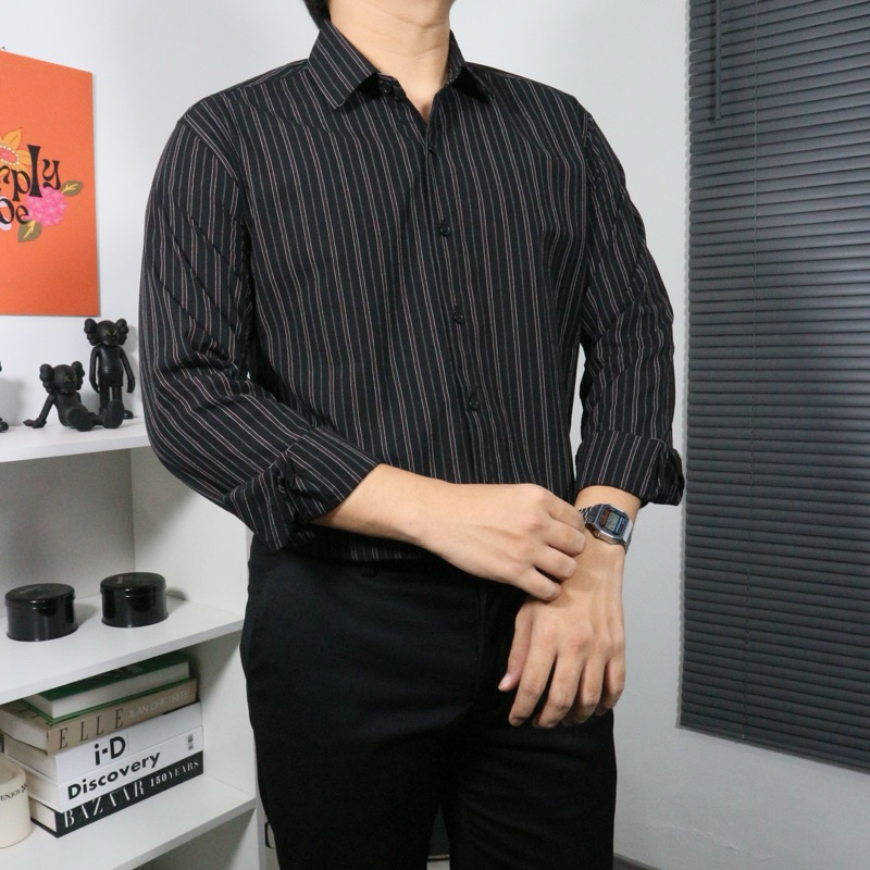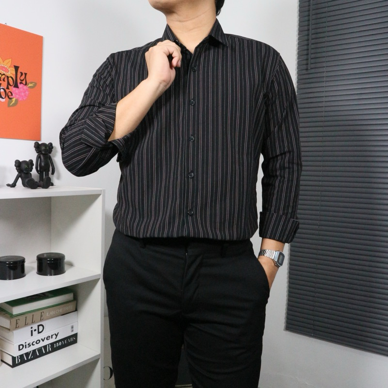 [Mall] Seven Jobs - Kemeja Stripe Pria Lengan Panjang | Stripes Shirt | Kemeja Salur Lengan Panjang