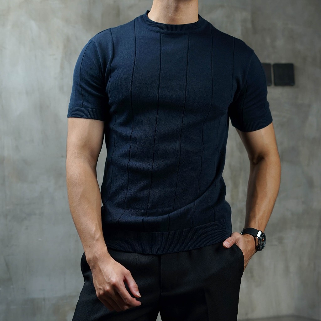 [Mall] Smith Berlin Kaos Pria Lengan Pendek Rajut Premium Ken Knit Modern Fit Tekstur Motif Polos