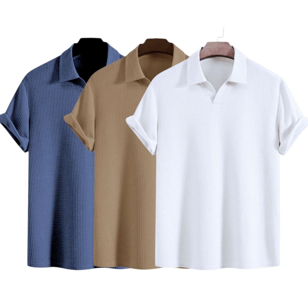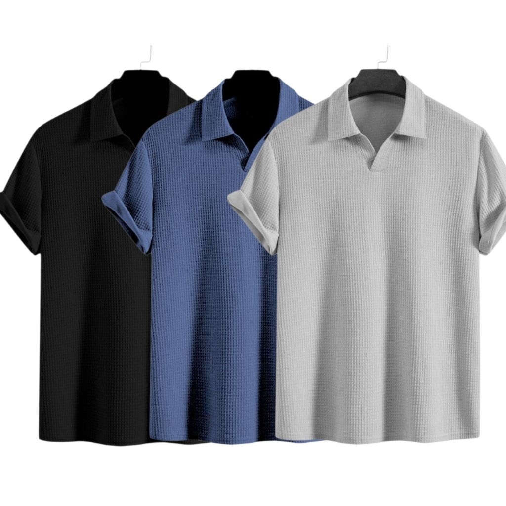 [Mall] paket 3 pcs kaos kerah polo v-neck lengan pendek bahan waffle premium baju keren dewasa atasan cowok