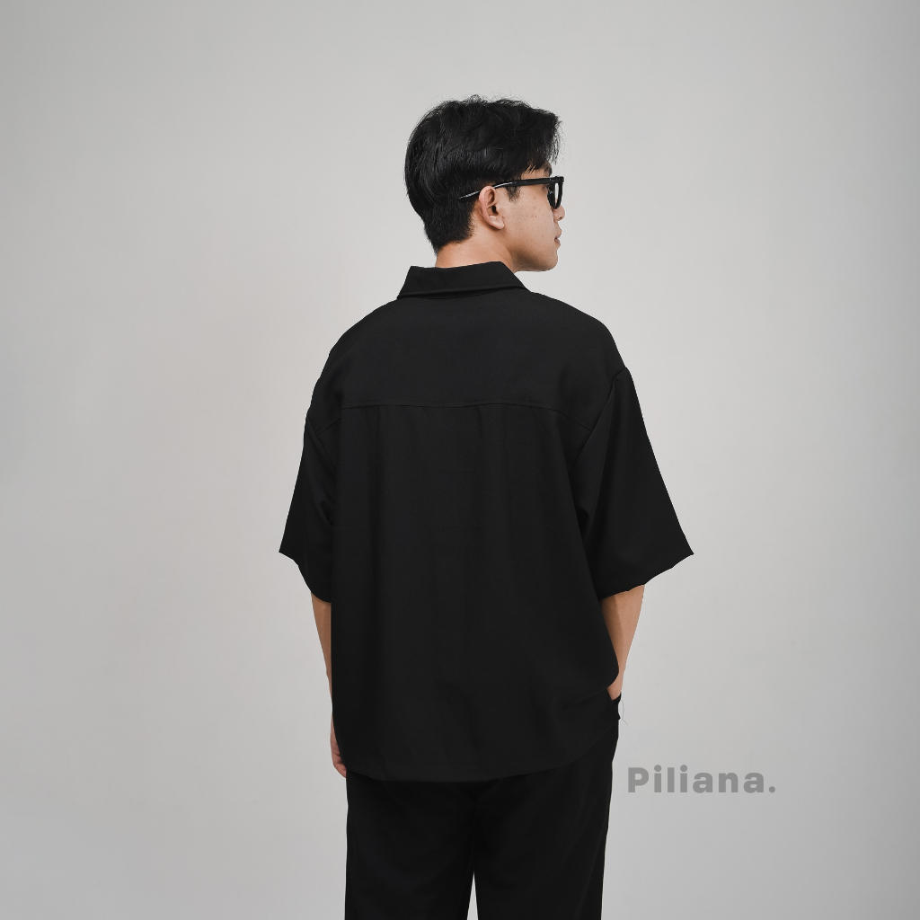 [Mall] Piliana Kemeja Oversize Lengan Pendek Pria Black Kemeja Boxy