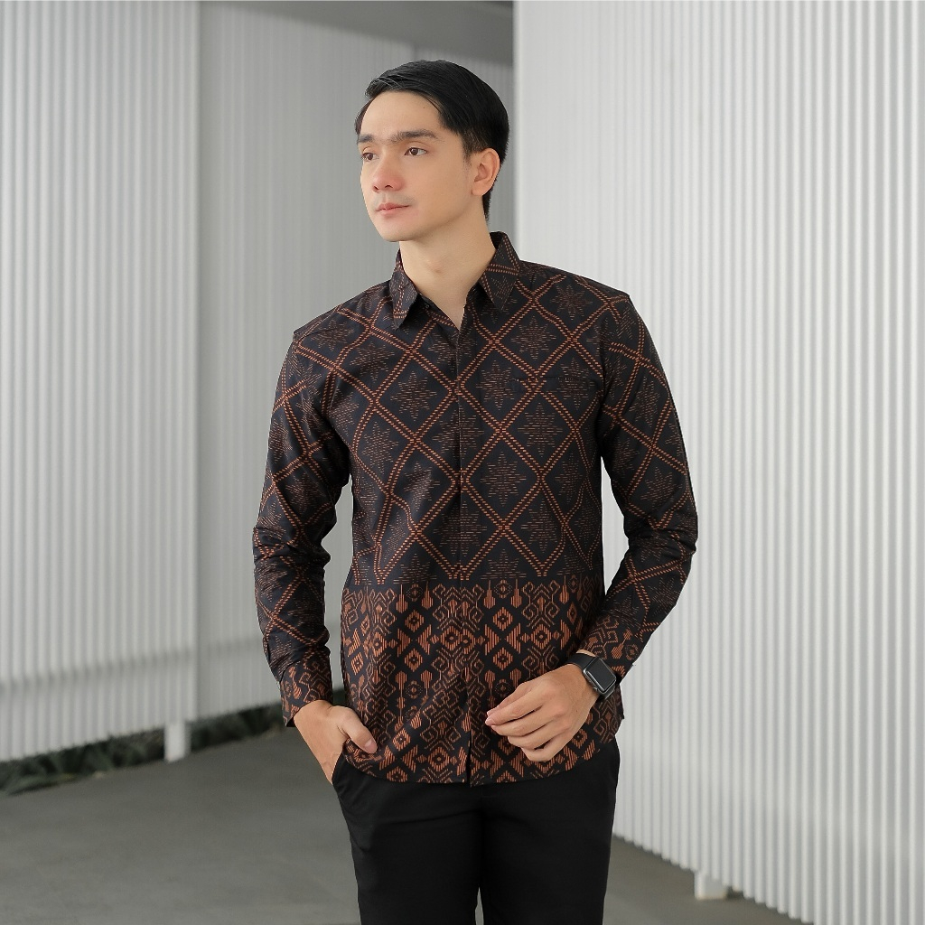 [Mall] Kemeja Batik Pria Lapis Puring Premium Lengan Panjang Batik Furing Tribal 047 A