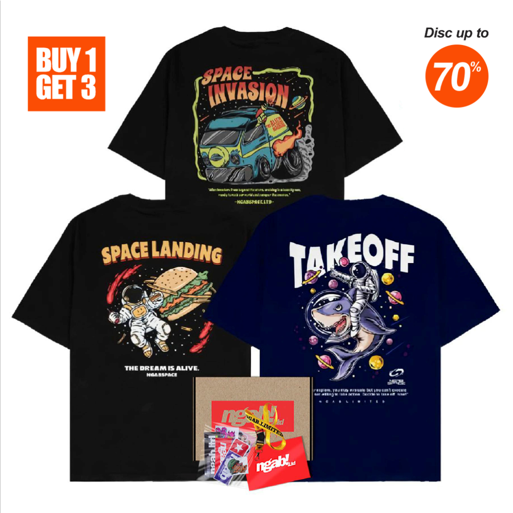 [Mall] Buy 1 Get 3 Ngab Kaos Distro Take Off Space Landing Space Invasion BD011 Unisex Pria Wanita
