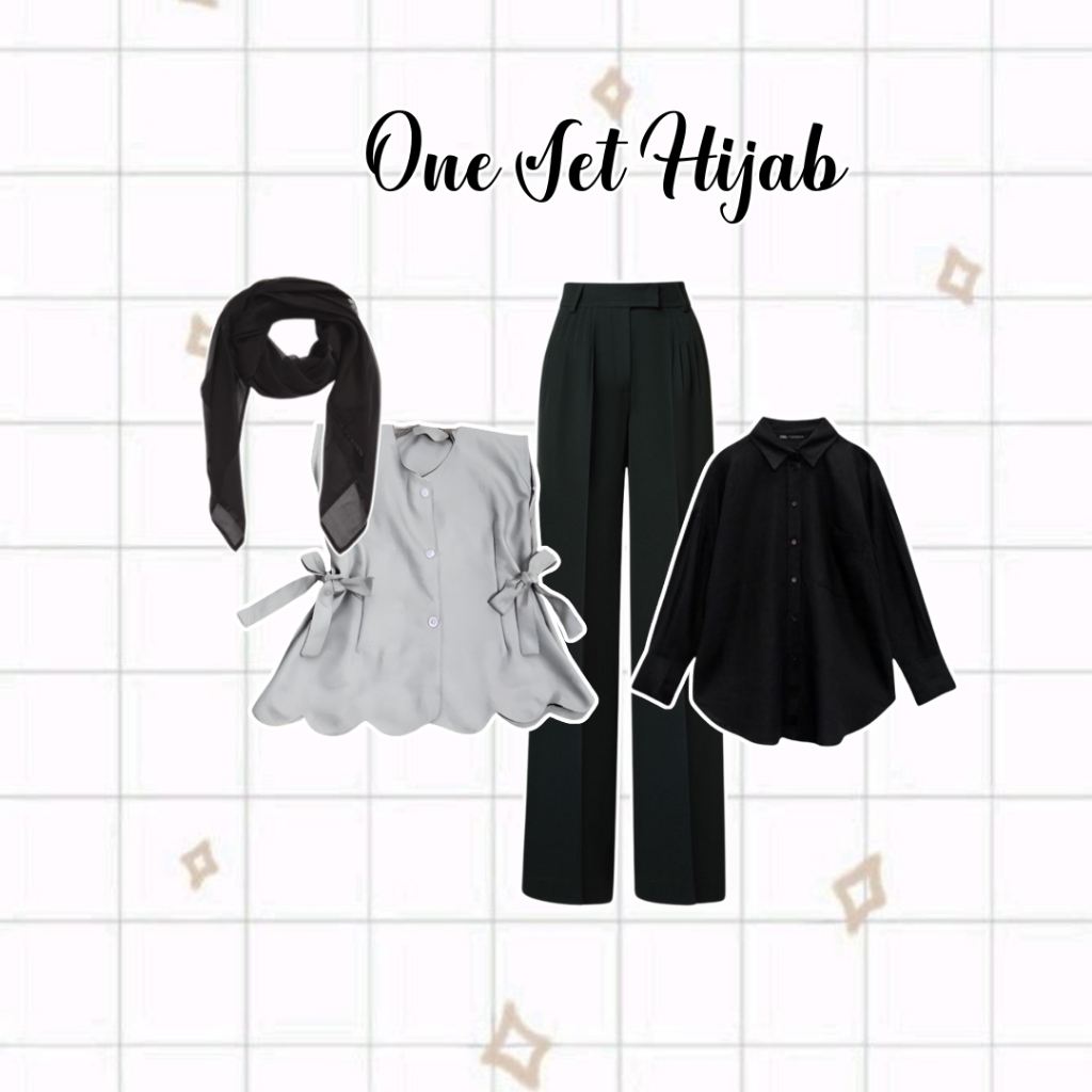 "OOTD Hijab Set 4 Pcs Korean Style - Kemeja Vest Knit Celana Wanita Kekinian AD425"