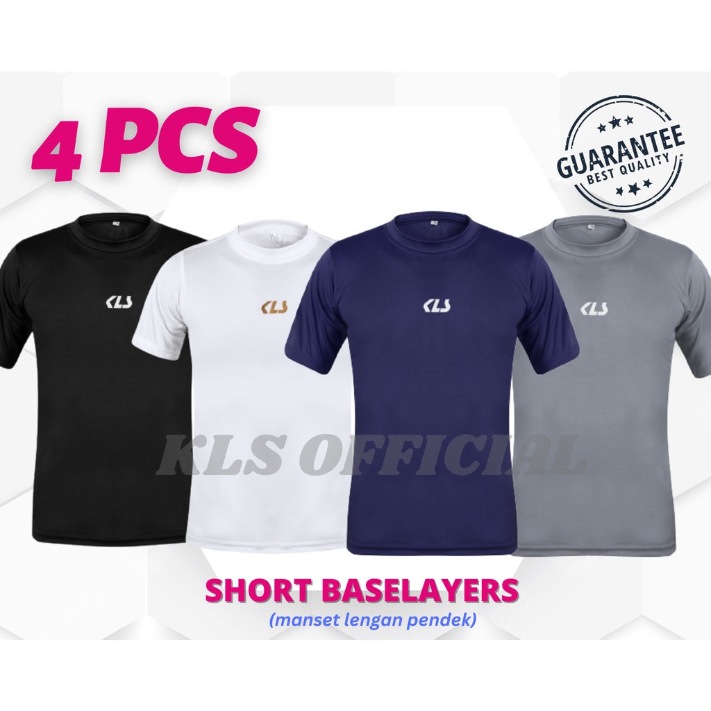 [Mall] Paket 4 pcs Manset Lengan Pendek Baju Olahraga Pria Gym Wanita, Baselayers Kaos Pakaian Jogging