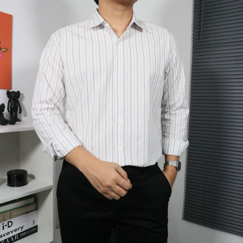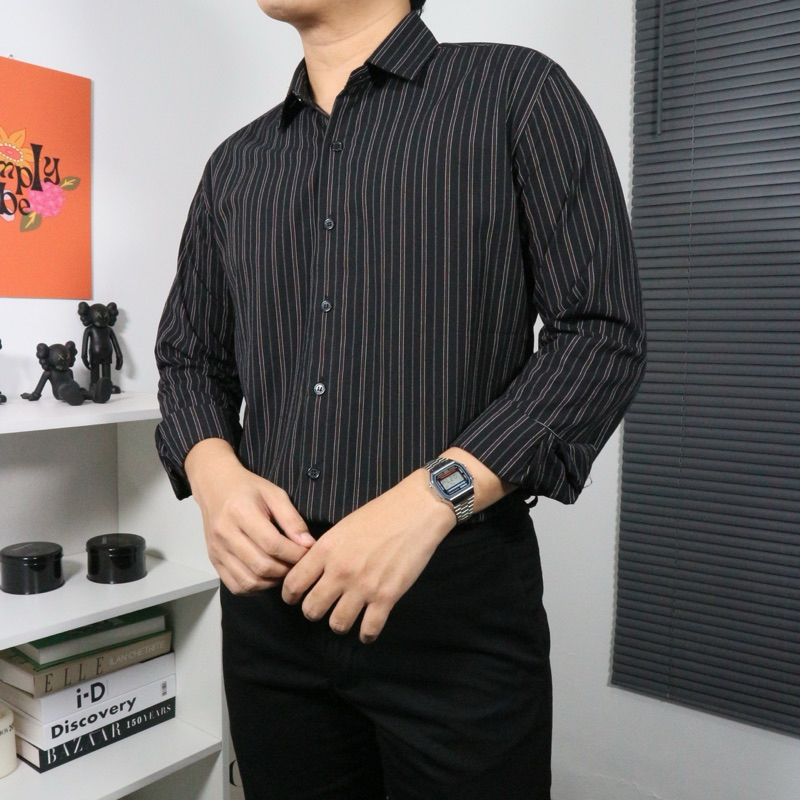 [Mall] Seven Jobs - Kemeja Stripe Pria Lengan Panjang | Stripes Shirt | Kemeja Salur Lengan Panjang