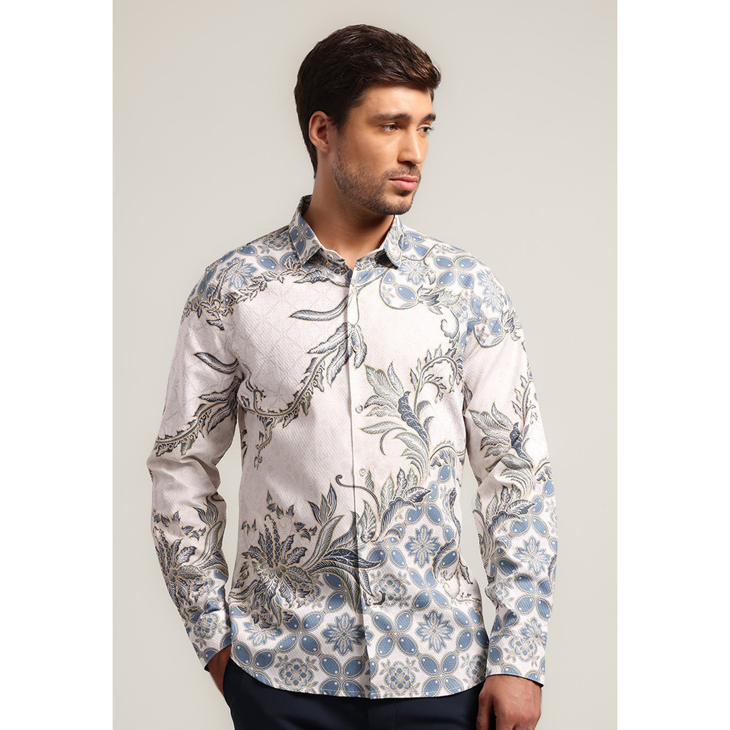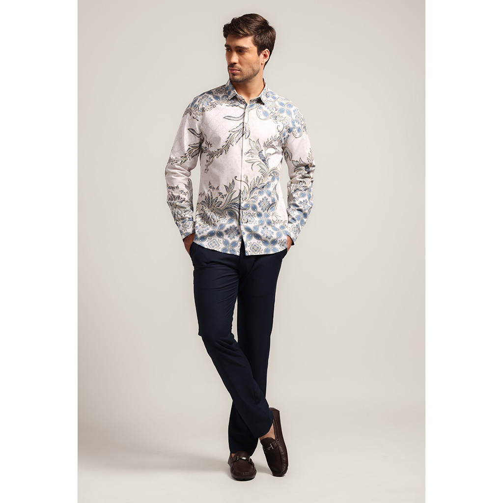 [Mall] Kemeja Batik Pria Lengan Panjang Balereng - White