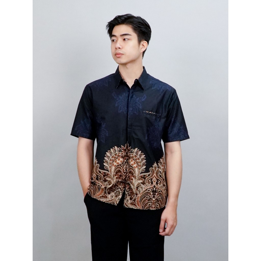 [Mall] Kemeja Batik Pria Modern Lengan Pendek Charisma Navy