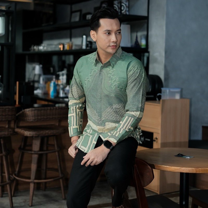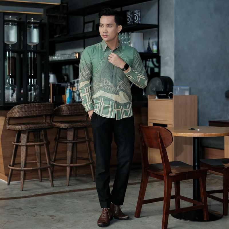 [Mall] BARA SAGE Kemeja batik pria Lengan panjang furing slimfit katun halus lembut
