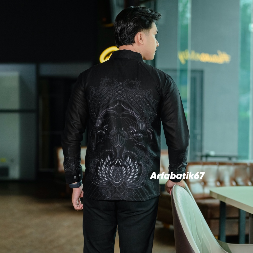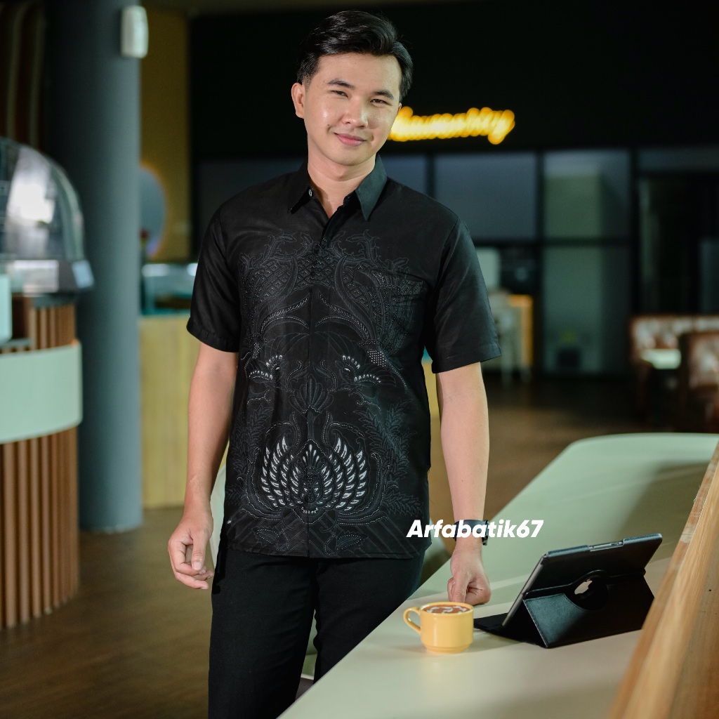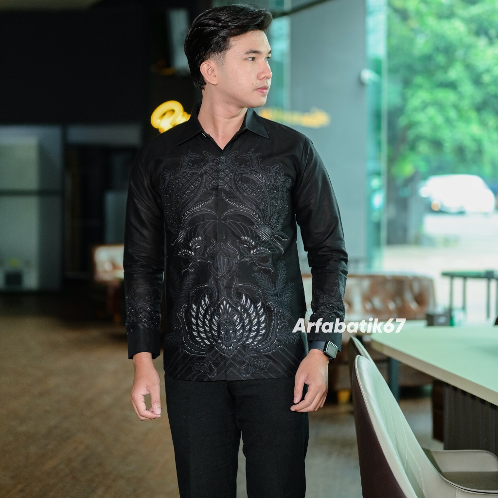 [Mall] SLIMFIT MAHKOTA HITAM kemeja batik Slim fit pria lengan panjang dan lengan pendek katun premium lapis furing hero by arfabatik67