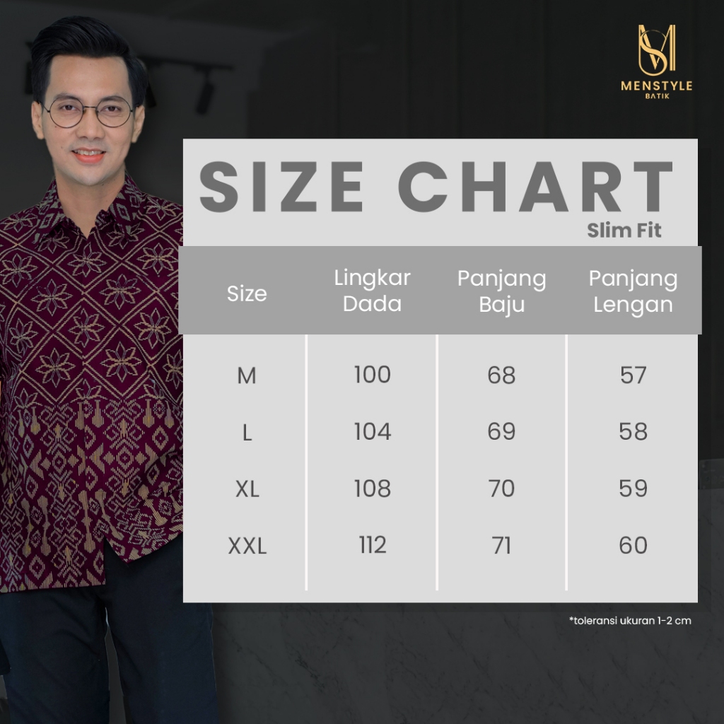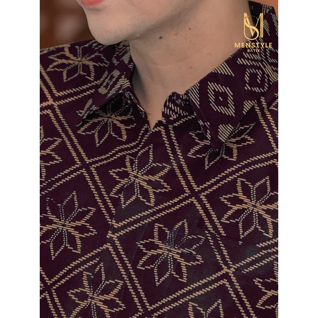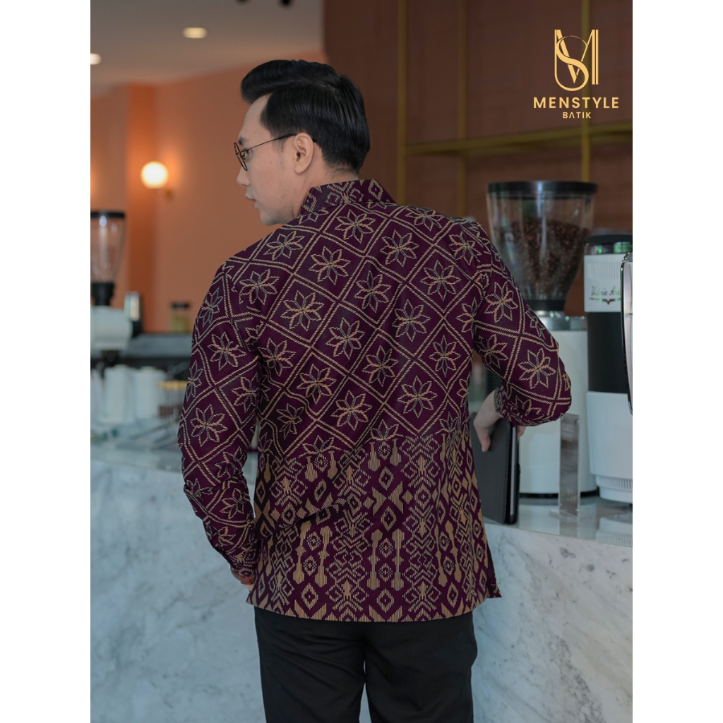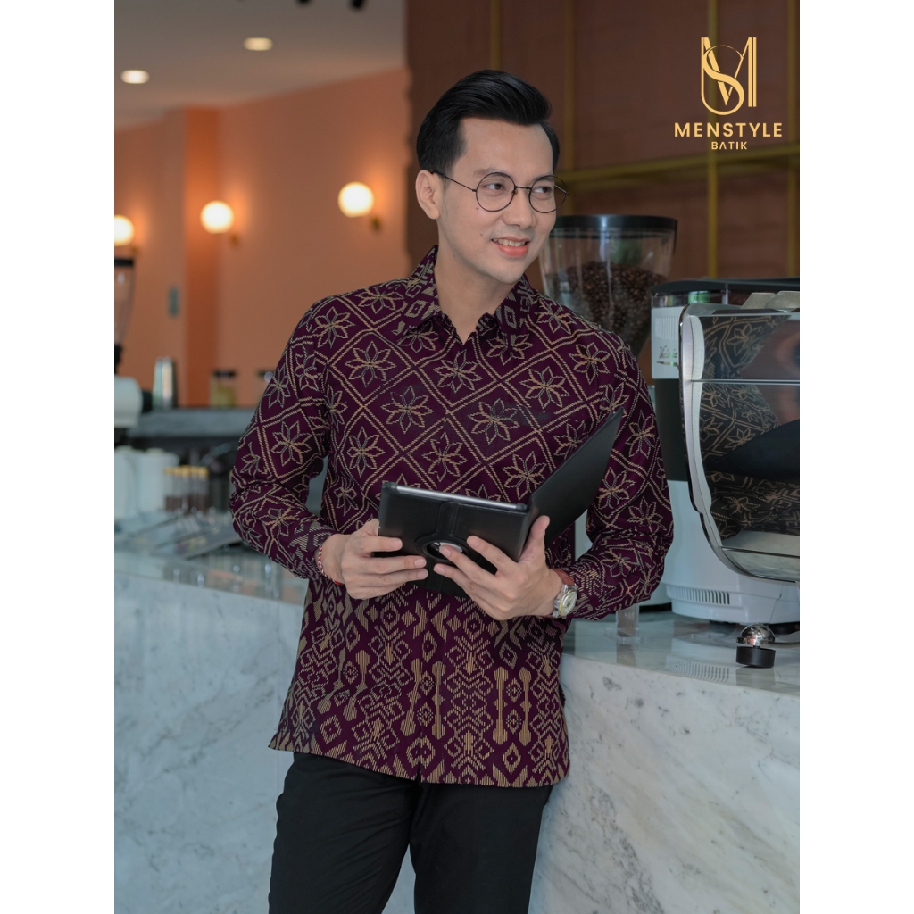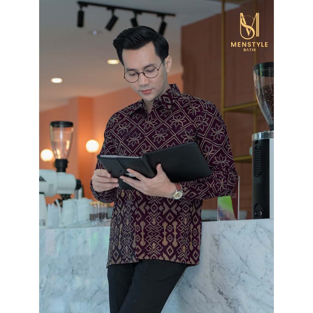 [Mall] MENSTYLE BATIK - Kemeja batik pria Gahtan Burgundy slimfit lapis furing bahan katun lengan panjang