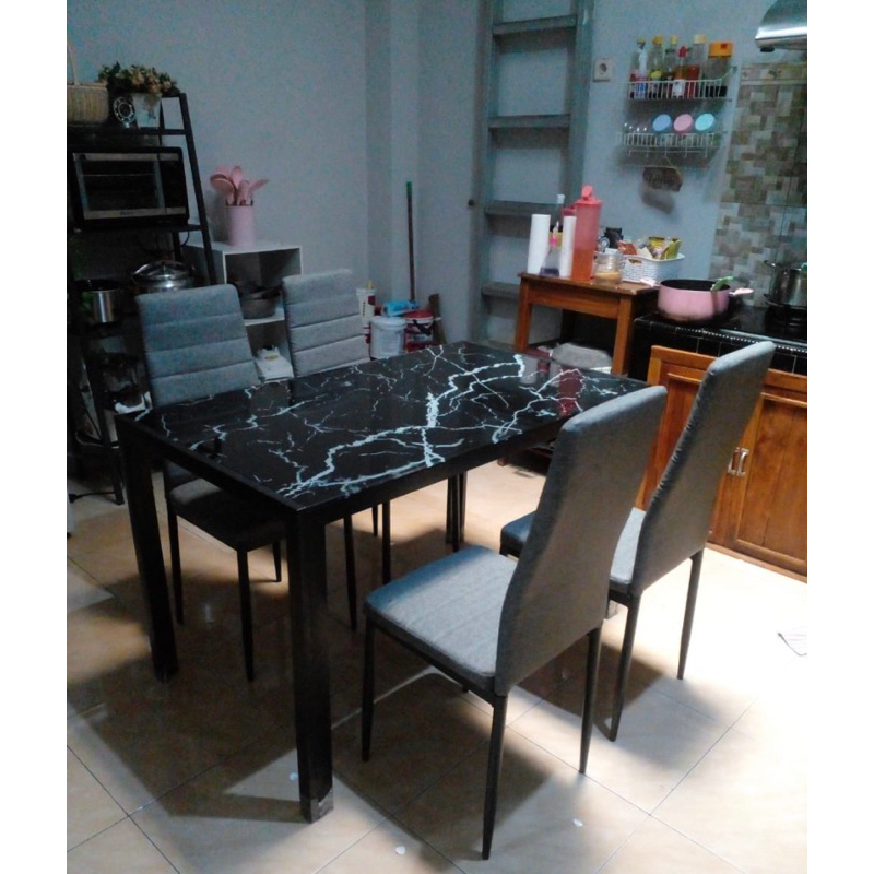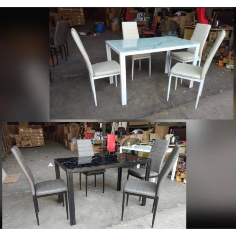 MEJA MAKAN MEJA KAKI BESI MEJA MAKAN KACA MOTIF MARMER MEJA MINIMALIS IMPORT